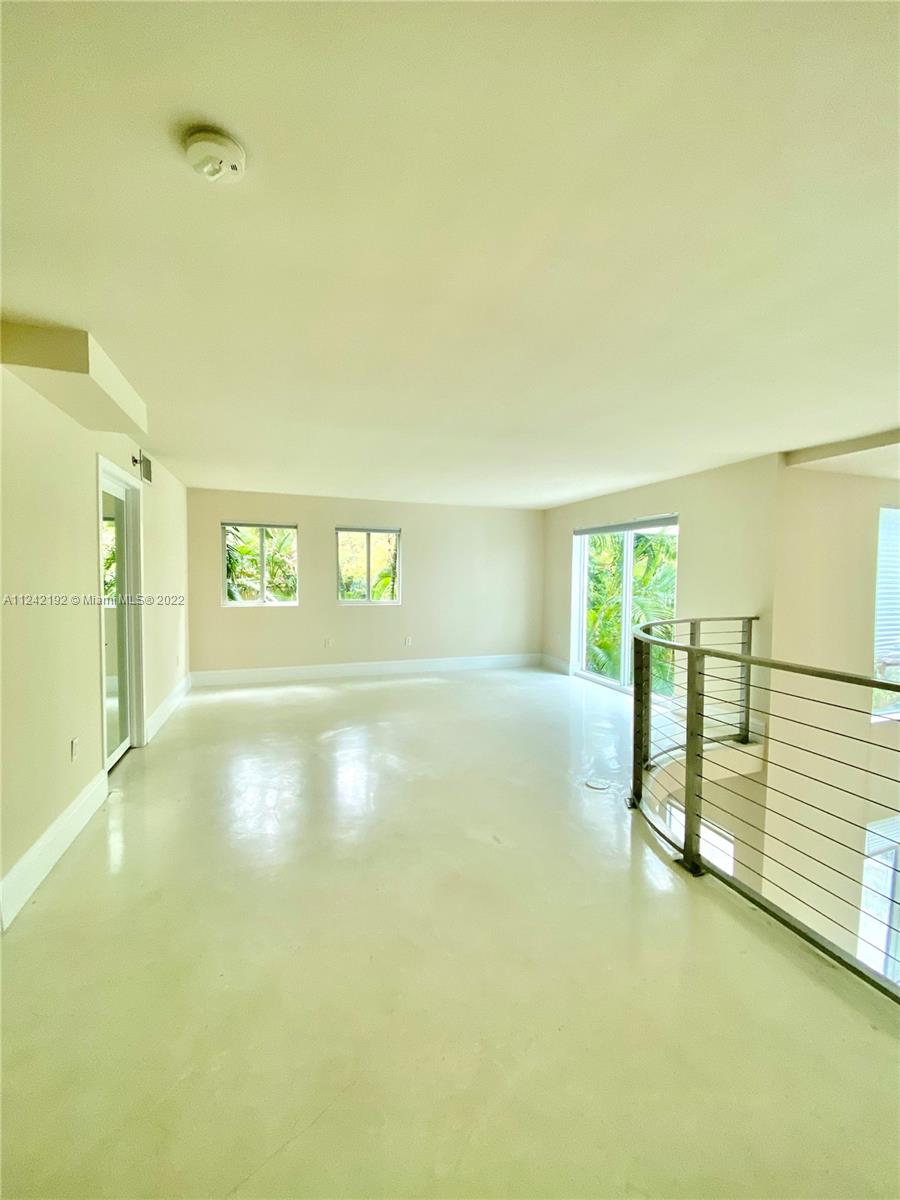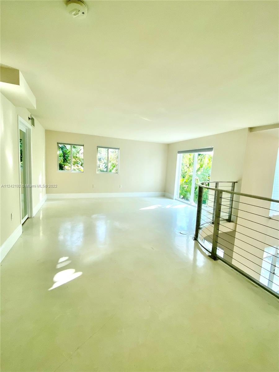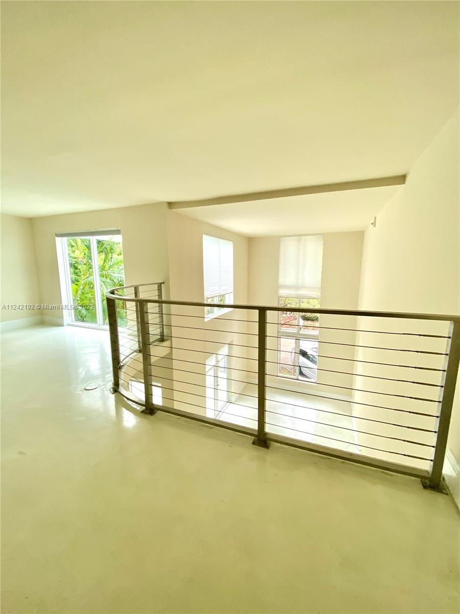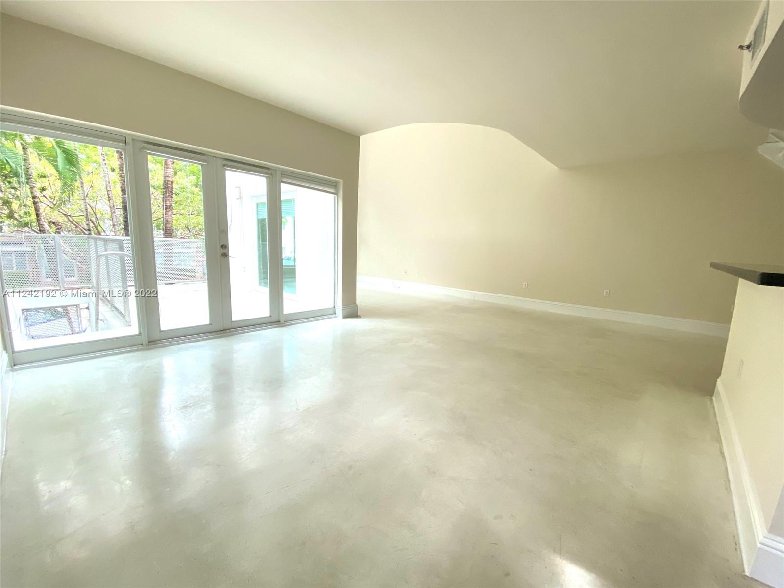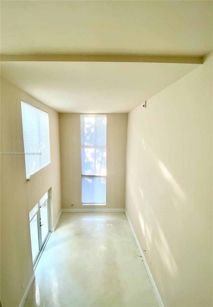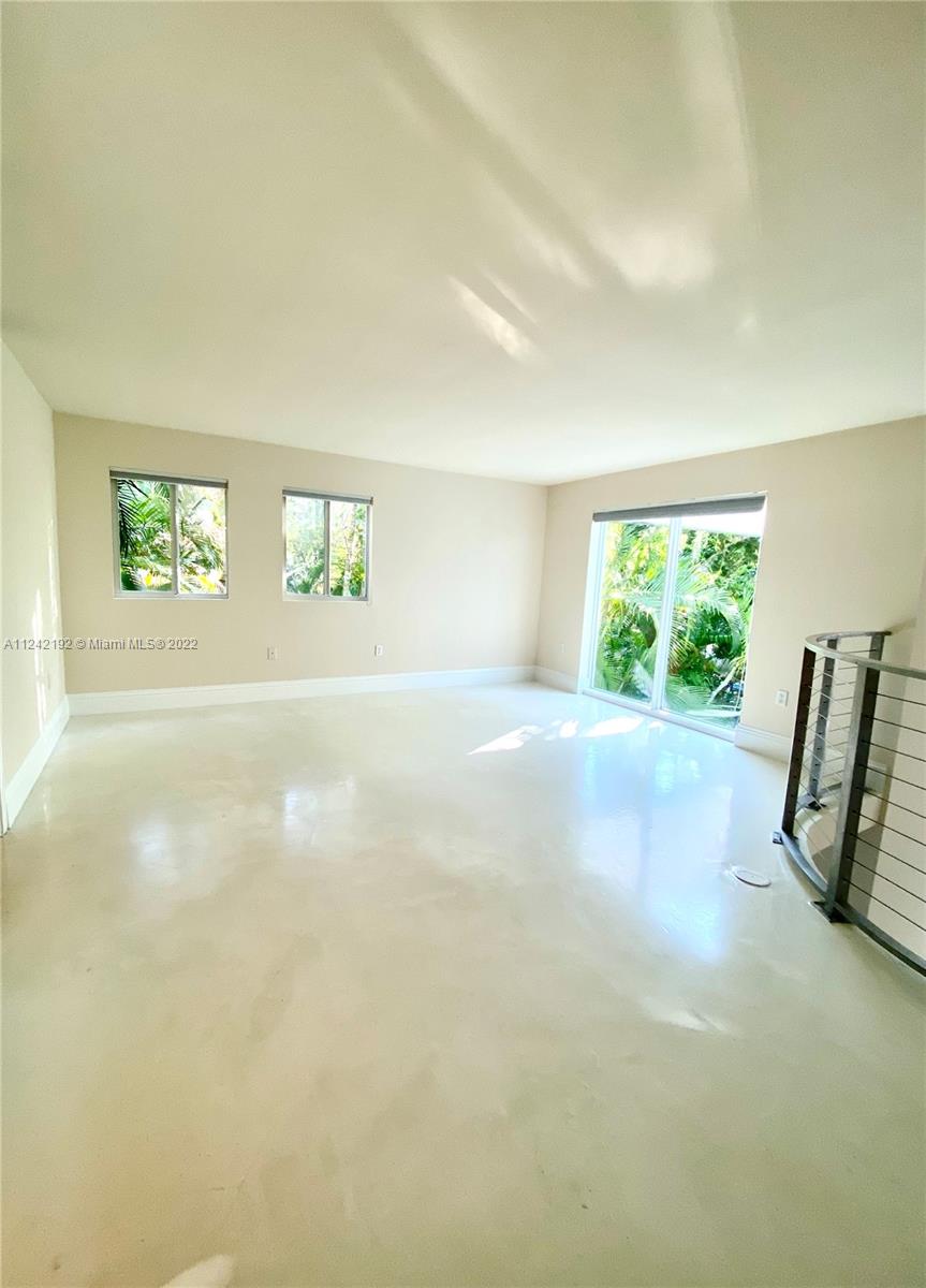 Spacious loft style on 2 levels, master bedroom and bath upstairs, featuring concrete floor, private balcony , stainless steel appliances, 2 parking garage spaces, common pool