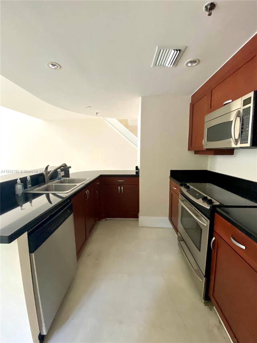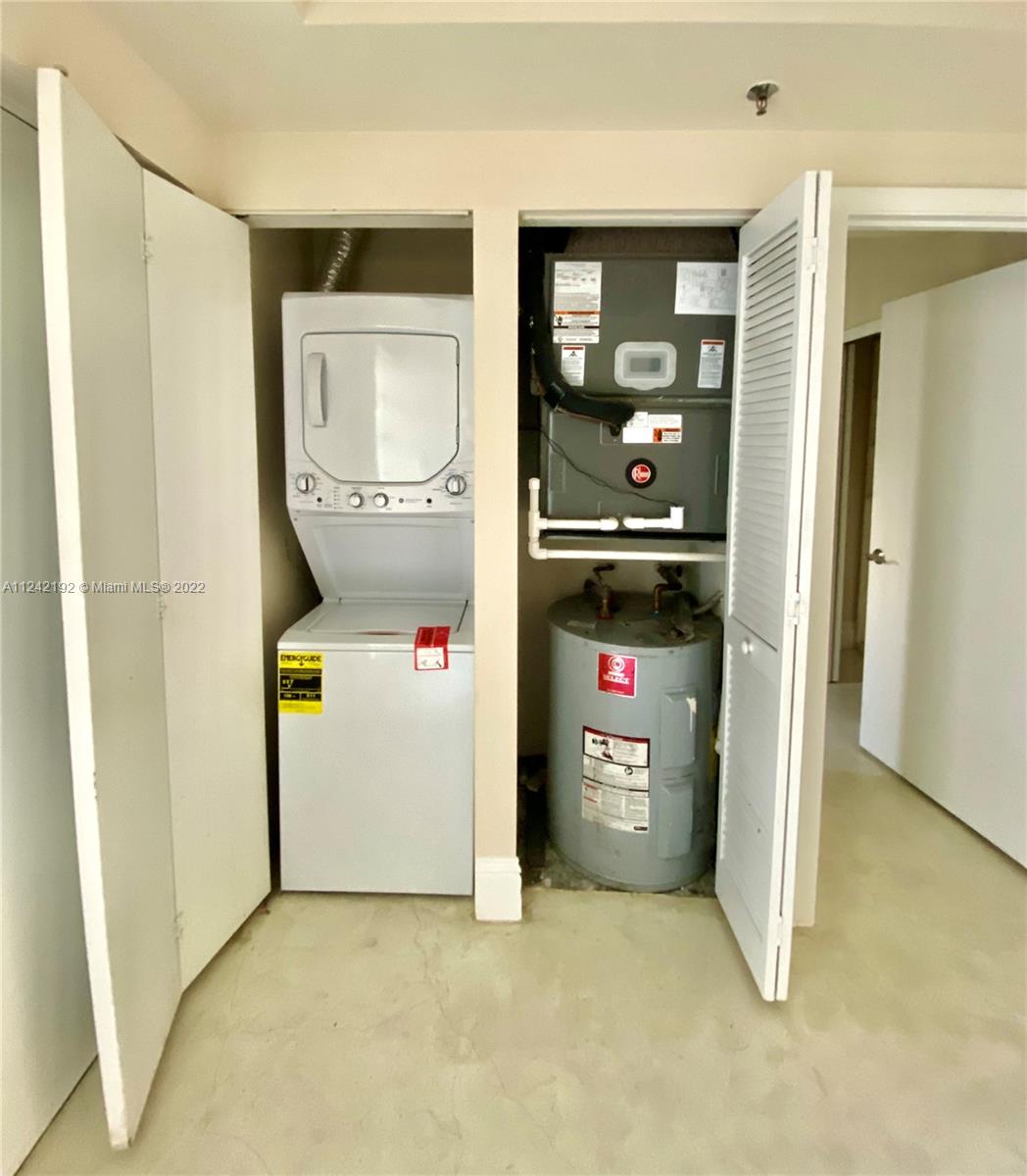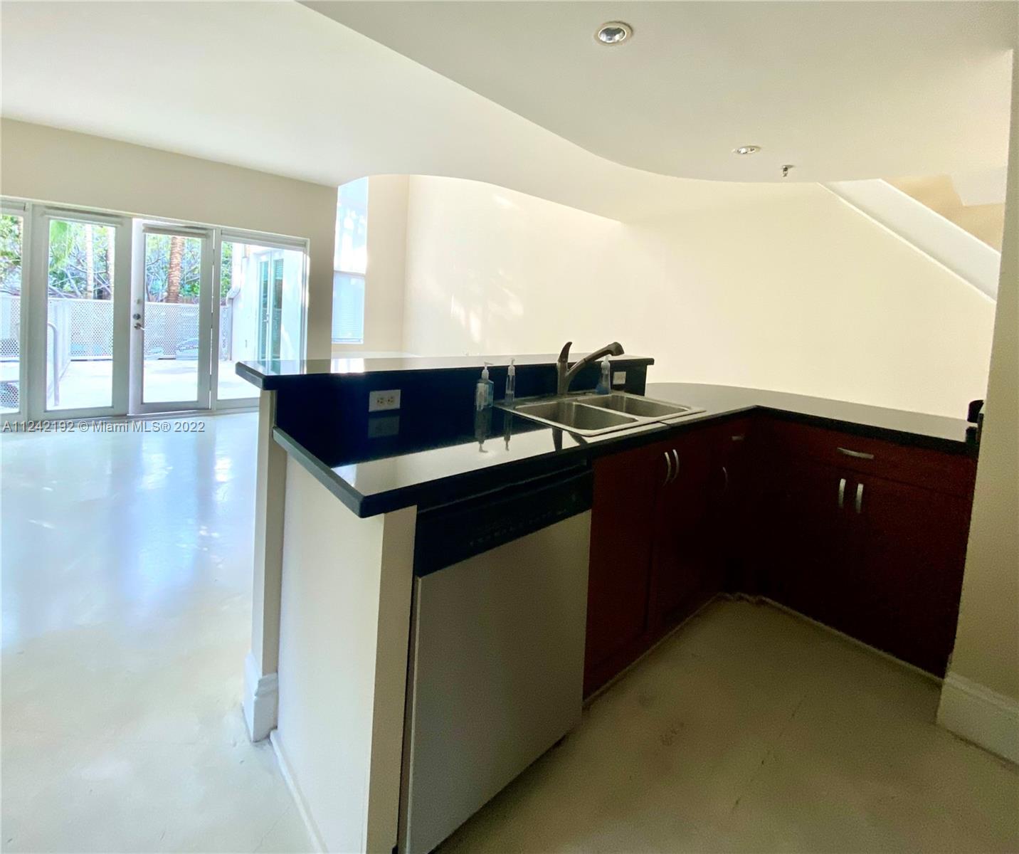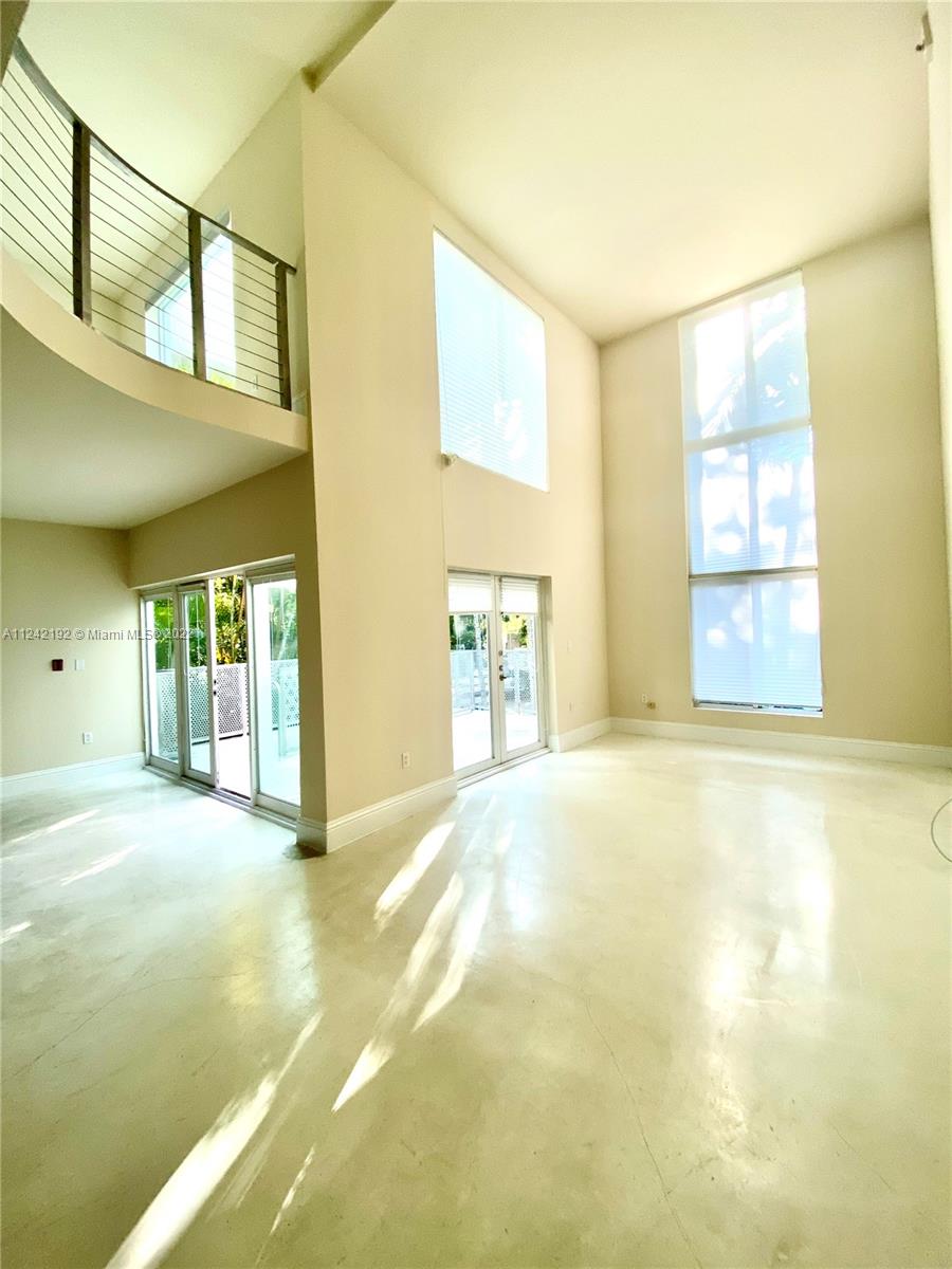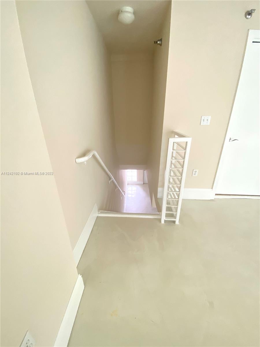 Spacious loft style on 2 levels, master bedroom and bath upstairs, featuring concrete floor, private balcony , stainless steel appliances, 2 parking garage spaces, common pool