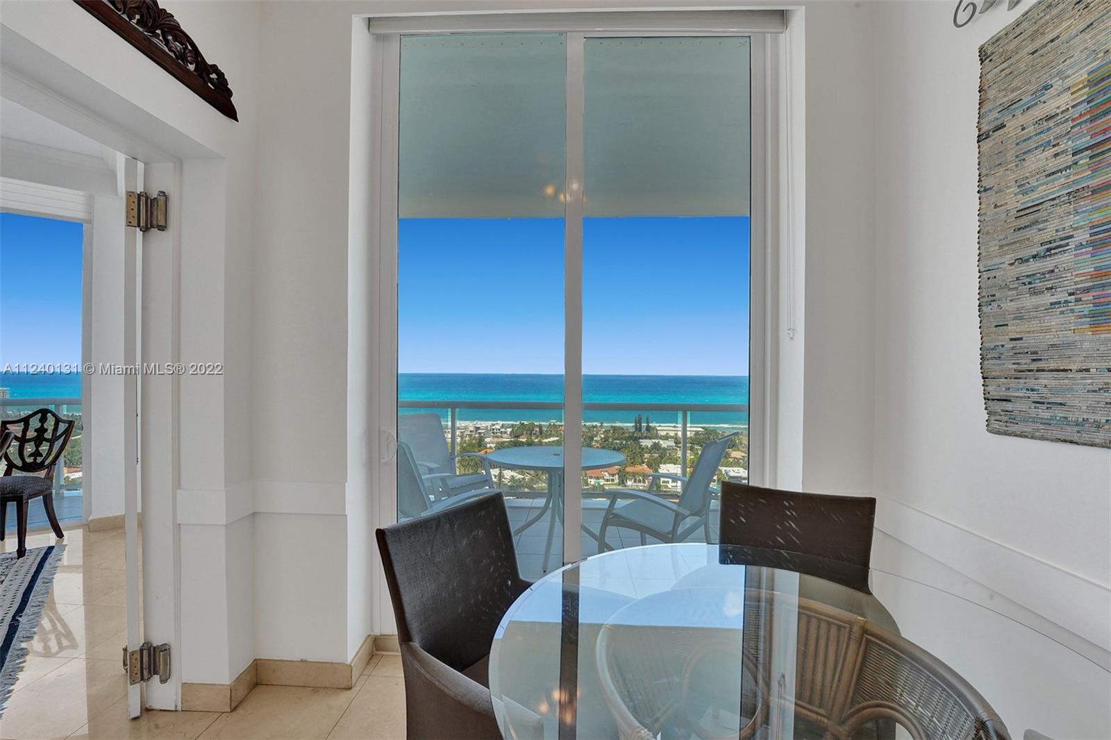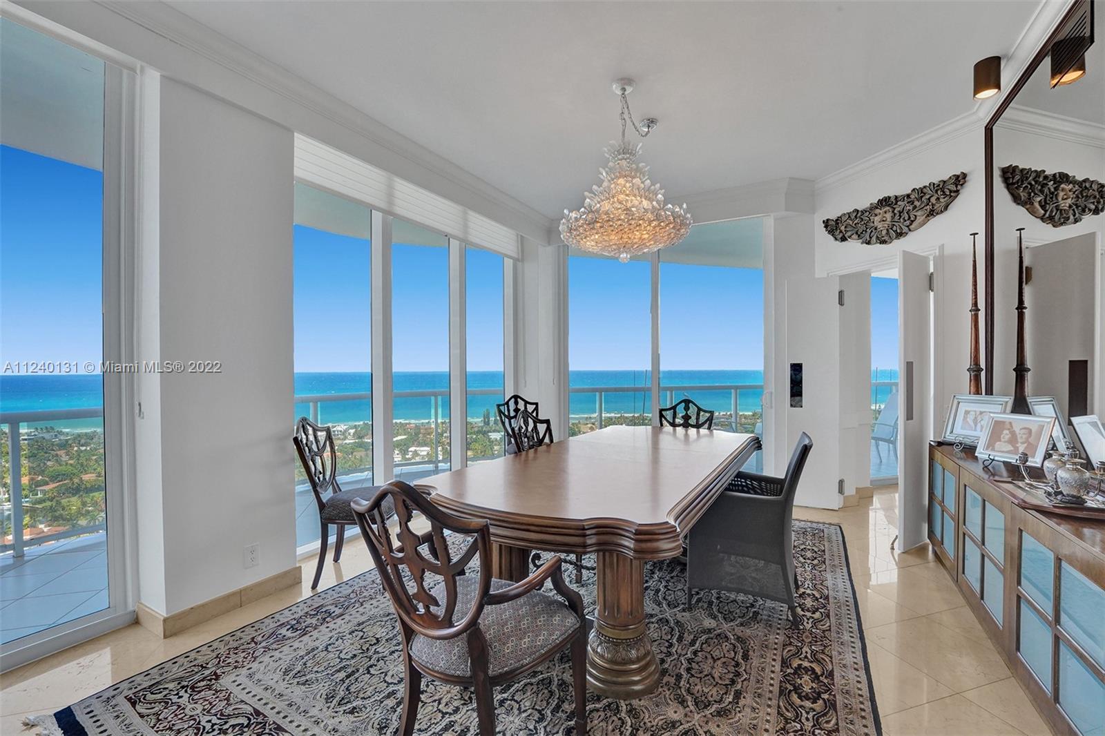 First time on the market! Architecturally designed three bedroom Tower Suite 27th floor BISCAYNE MODEL apartment with soaring 10 foot high ceilings. Atlantic Ocean views galore from every window. Features include HIGH IMPACT WINDOWS, marble floors, Hunter Douglas shades, recessed lights, ceiling mounted speakers, custom closet interiors and upgraded kitchen appliances. Custom mill work can be found throughout apartment. Third bedroom custom designed as a library with beautiful mahogany wood floors and coffered ceilings. Second bedroom includes custom built closets. Additional walk in closet in Master area. Enjoy side by side full sized parking spaces in garage. One Island Place is a full service luxury building situated on 8 acres in the heart of Aventura.