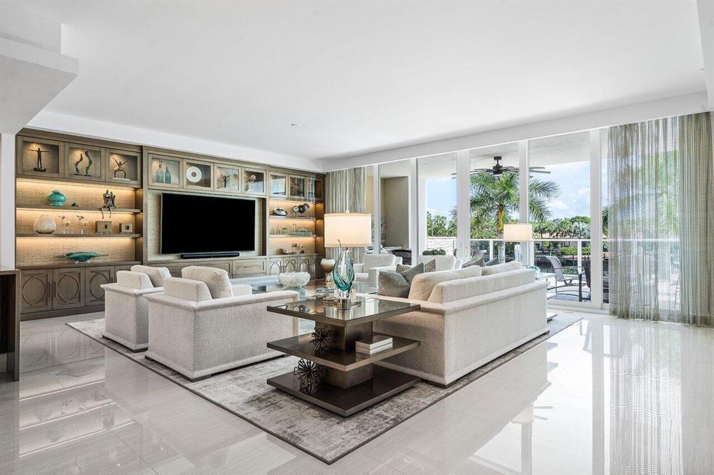 This PERFECT 3 bedroom, 3.5 bath + den Azure condo overlooking the stunning Marina is elegantly furnished including artwork, accessories, kitchenware and linens. Extraordinary attention to details include porcelain flooring, built-in cabinetry, quartz waterfall countertops, sophisticated lighting fixtures, designer wallpapers, custom electronic window treatments and a gourmet kitchen with Thermador appliances. Natural light flows in from floor to ceiling impact doors and windows that open to a covered summer kitchen and a large terrace offering stunning marina and water views. Azure amenities include individual elevator entry, private garages, 24/7 security, extensive concierge services, resident club rooms, a fitness center and spa, two resort pools and direct ocean access for boaters