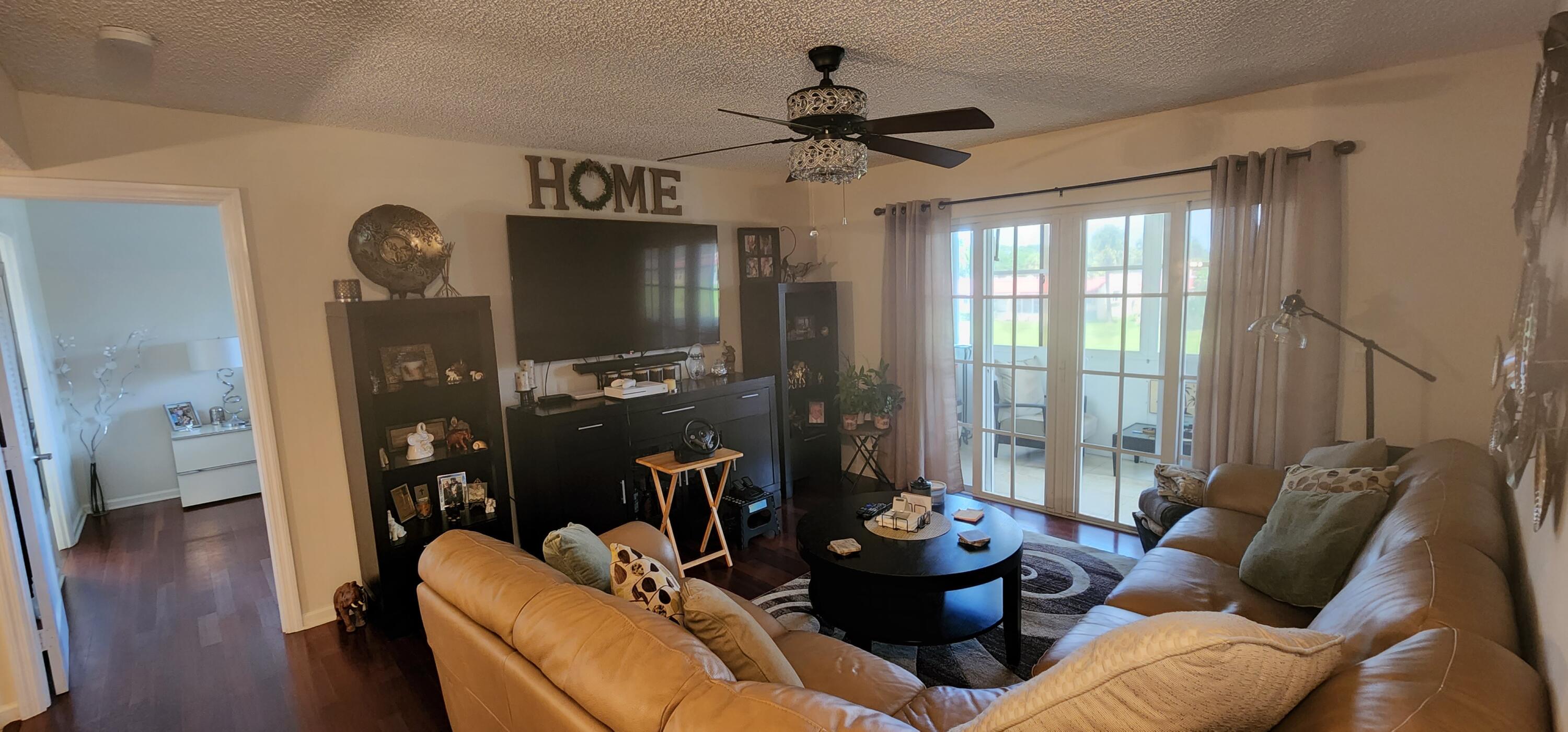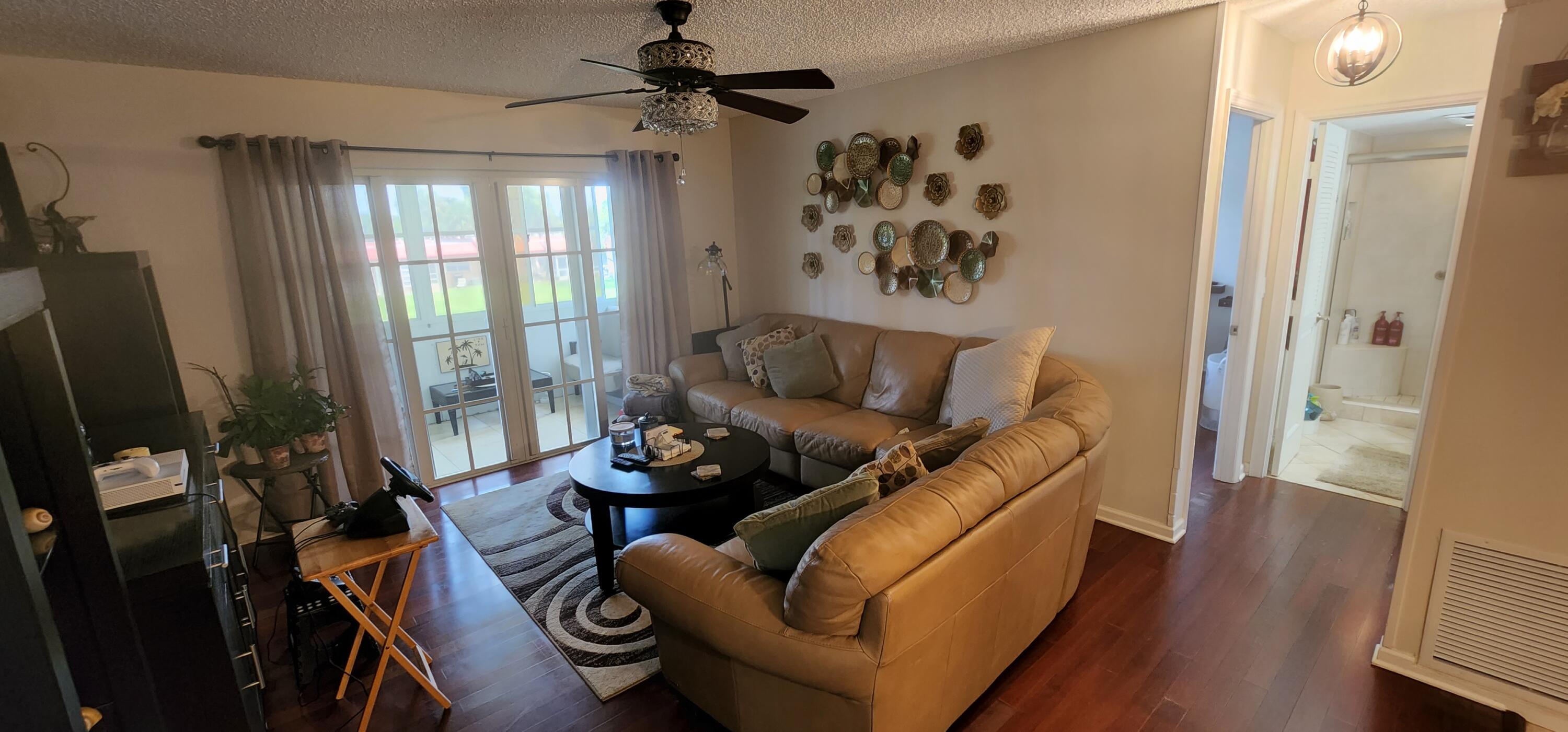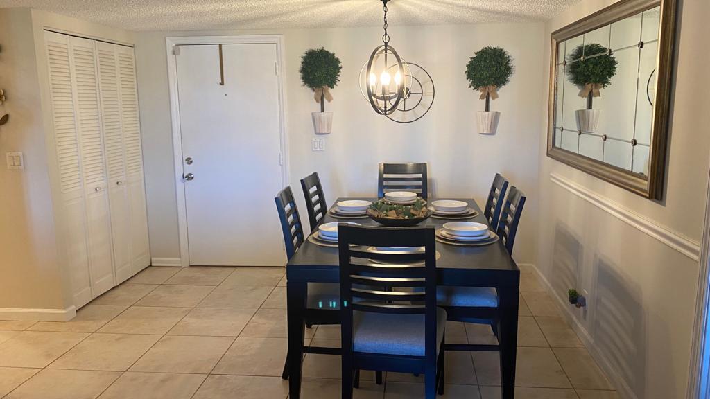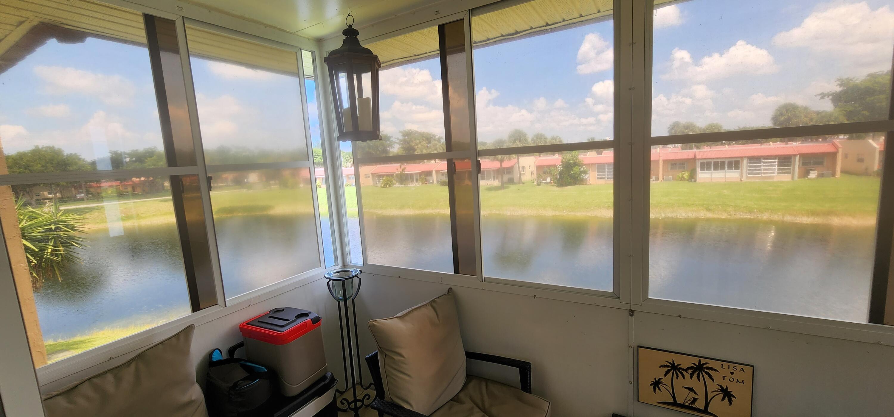 Amazing 2 bedroom/ 2 bath 888 sq ft condo in pristine condition. Freshly painted and renovated. Wood flooring in bedrooms and living room. Kitchen and dining areas are tiled. Kitchen has newer white raised panel cabinets with all stainless appliances. Both bathrooms are updated with stall showers, grab bars and seats as well as updated vanities. All rooms have designer ceiling fans and light fixtures. Windows have custom plantation shutters and hurricane proof windows, as well as sliding glass doors to the enclosed tiled balcony. Which has panoramic views of the lake. All closets are updated like California closets. BONUS.. washer and dryer are in the apartment. Newer hot water heater. Kitchen has been remodeled in neutral tones. A pleasure to show. Wi-Fi and cable included.