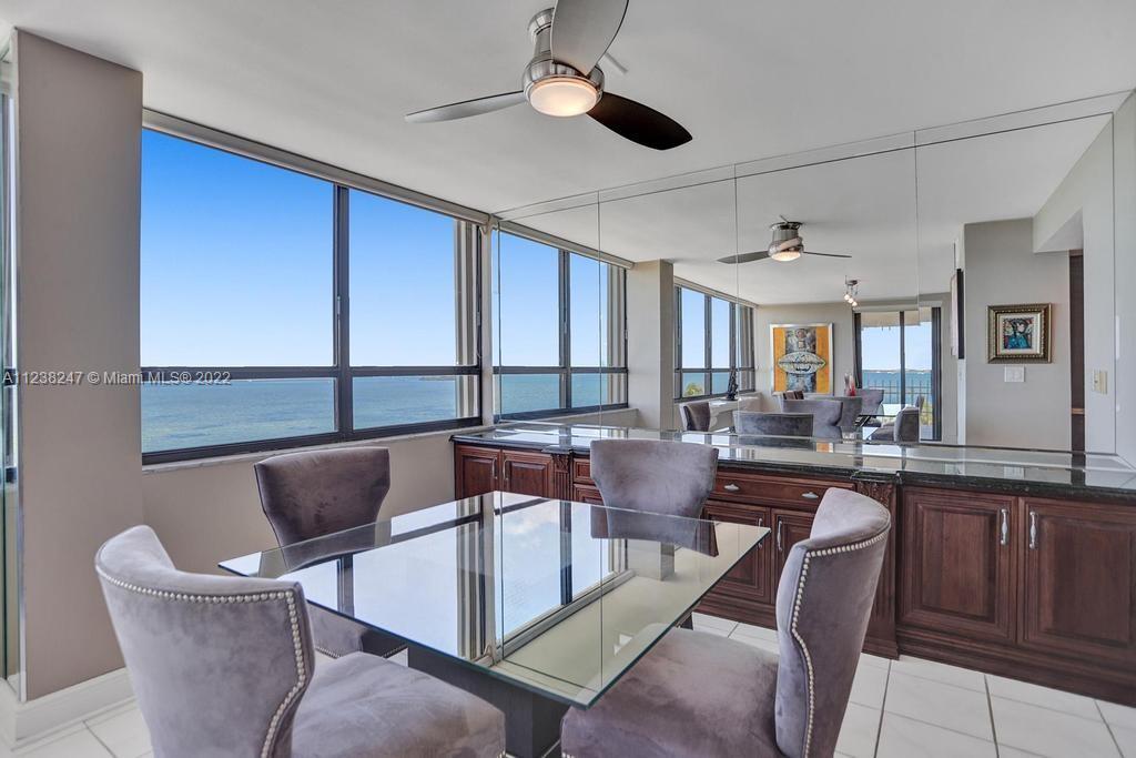 The most desirable line in the building is now available! The highly sought after "01 Line" is Furnished a 3 bedroom, 2.5 bathroom with 2,614 SF of living space. This residence offers the most incredible open bay views from every room plus amazing sunrises every morning. Features include custom lighting, a beautiful built-in bar, and an open kitchen with wood cabinetry, marble countertops, S.S appliances and a separate breakfast area. The kitchen can also convert to a closed kitchen. The third bedroom lives as a den with gorgeous woodwork, lighting, book shelves, and motorized shades. The large primary suite has its own private balcony, two large walk-in closets and an office. The primary en-suite bathroom has a water closet, separate tub and shower, and double sinks. This is a true gem!