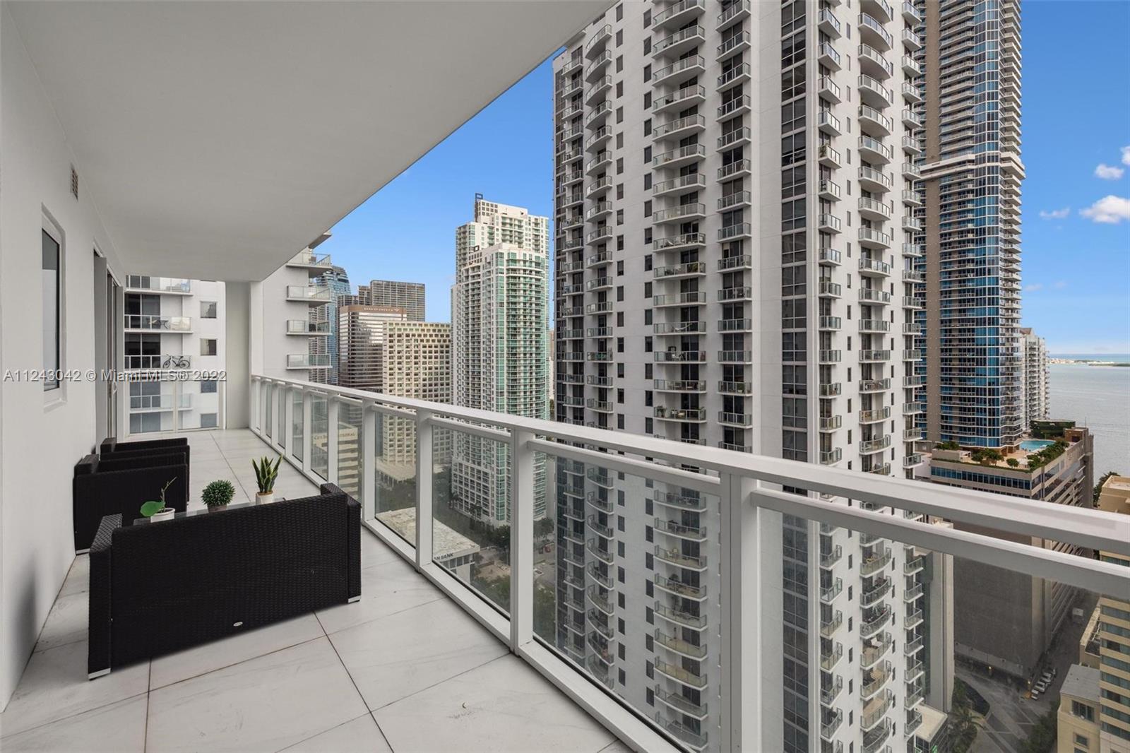 Priced to sell, best line in the building! Spectacular city and Bay view from the 28 floor. Beautiful and spacious 2 bed/ 2 bath with 9 ft ceilings. Corner unit. Italian porcelain floor. Designer kitchen cabinetry w/ Bosch appliances, wine cooler and modern cooking isle great for entertaining. Large master suite w/ plenty of closet space. Window screens and black outs thru out. Extra large balcony w / view of the Bay and City. Great option to live or as an investment to rent out. All amenity building with a touch of class and elegance. Amenities include a beautiful pool area, cabanas, outdoor fireplace,BBQ area,club room, childrens play room,fitness center,valet,concierge and business center. This is the best Brickell Ave has to offer. Located right in the center of the financial district.