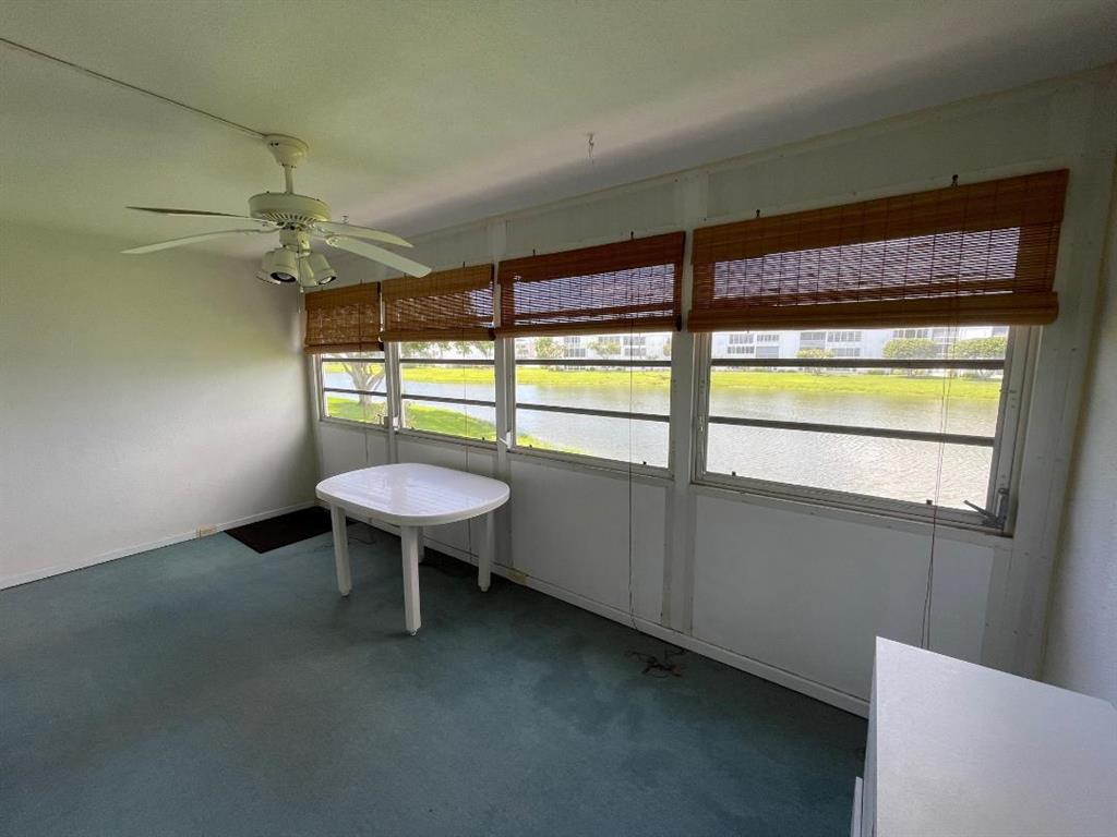 Water Views and Spacious Floor Plan in the Desirable Wellington Section of 55+ Century Village! Neutral Tile Floors in the Living Area and Den/Guest Room. Large Bedroom Suite with Walk-in Closet, Full Ensuite Bath, and Access to the Lanai. Enclosed Lanai for Extra Space. Complete Hurricane Accordion Shutters. Sold AS IS and Furnished. Non-smoking Building. Century Village is a 55+ community with so much to offer...