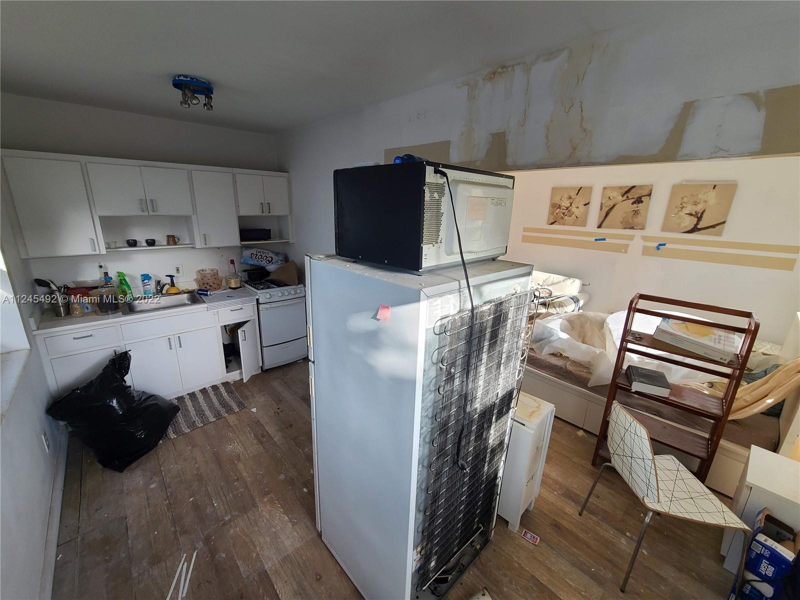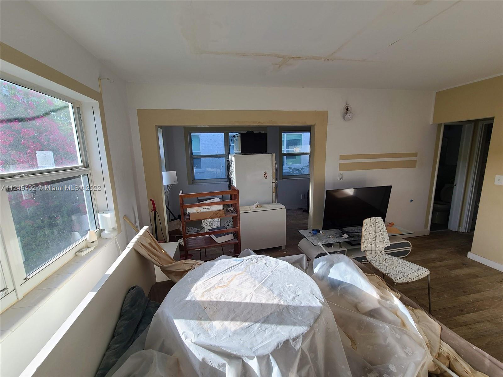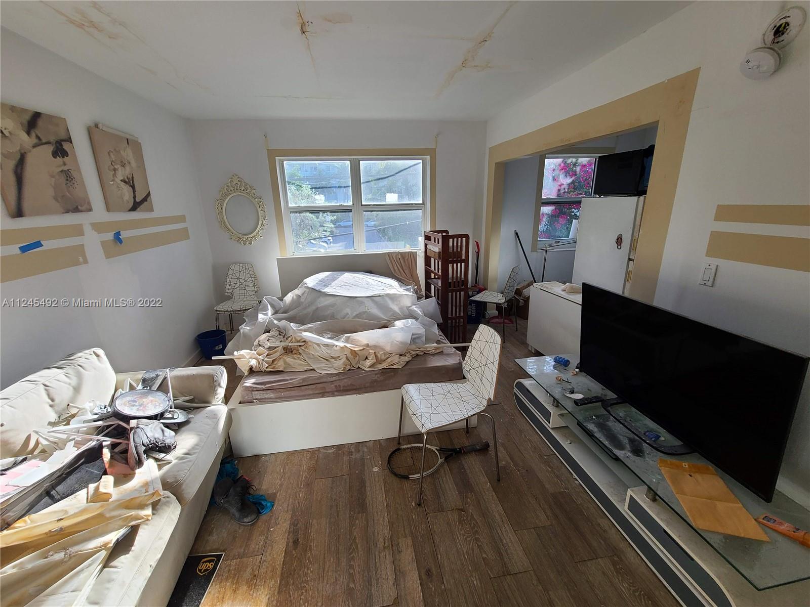 Handyman Opportunity! Sold AS-IS, HOA is changing the roof which caused water damage to the unit. Top floor corner unit with open view, impact windows, lots of potential. Fantastic location 1/2 block from Lincoln Road and lovely gated common grounds. Call listing agent for additional info or showings.