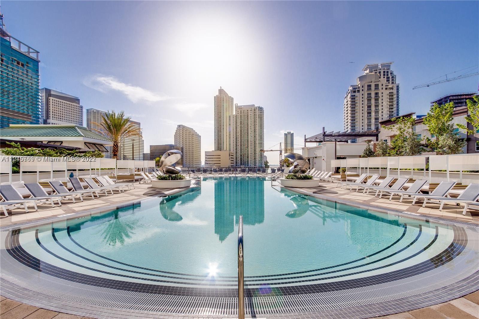 Large 1/1 with large walk-in closet, bathroom with shower & tub. Bedroom currently has a king-size bed with plenty of room for working space as well. Stainless-steel appliances including dishwasher, range, microwave, quartz countertop. Full size washer & dryer in unit. Large size balcony. Amenities (with wi-fi service throughout): 24-hour doorman, resort style pool with cabanas, BBQ grills, recently renovated fitness center, business center/library, wonderful playroom and outdoor playground, one acre amenity deck with Zen garden, game room, lounge for parties. This is the best location with many restaurants and shops within walking distance Conveniently located across the street from the Metrorail Brickell Station (access to Metromover and train) and next to a Publix for easy shopping