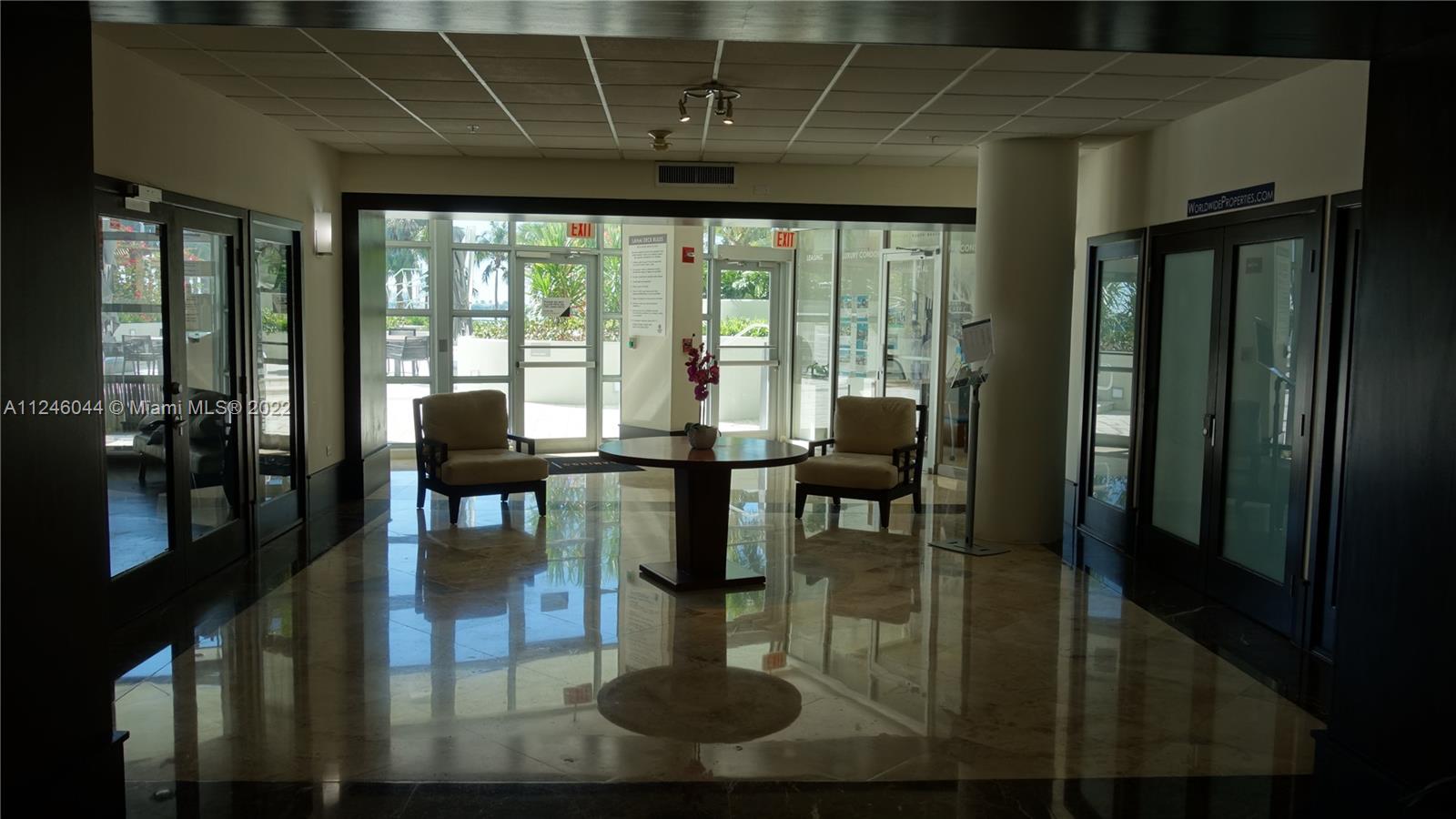 South Beach studio in Flamingo Point - resort style condominium with completely rebuilt lavish tropical garden. World class athletic club, infinity pool, private restaurant, convenience store, dry cleaner, 24/7 parcel room, valet parking, miles long walking path along Intracoastal waters, marina - on over 16 acres. Spacious apartment with lots of the closets, newer(2019) appliances, and A/C, laundry facilities on the floor or washer/dryer combo hook up in the apartment. No pet restrictions. Great for vacation or investment, 30 days minimum rent. Parking space, storage bins and private boat pier available for rent from the association for additional fee. A/C, hot water, gym for 2 included in the maintenance.