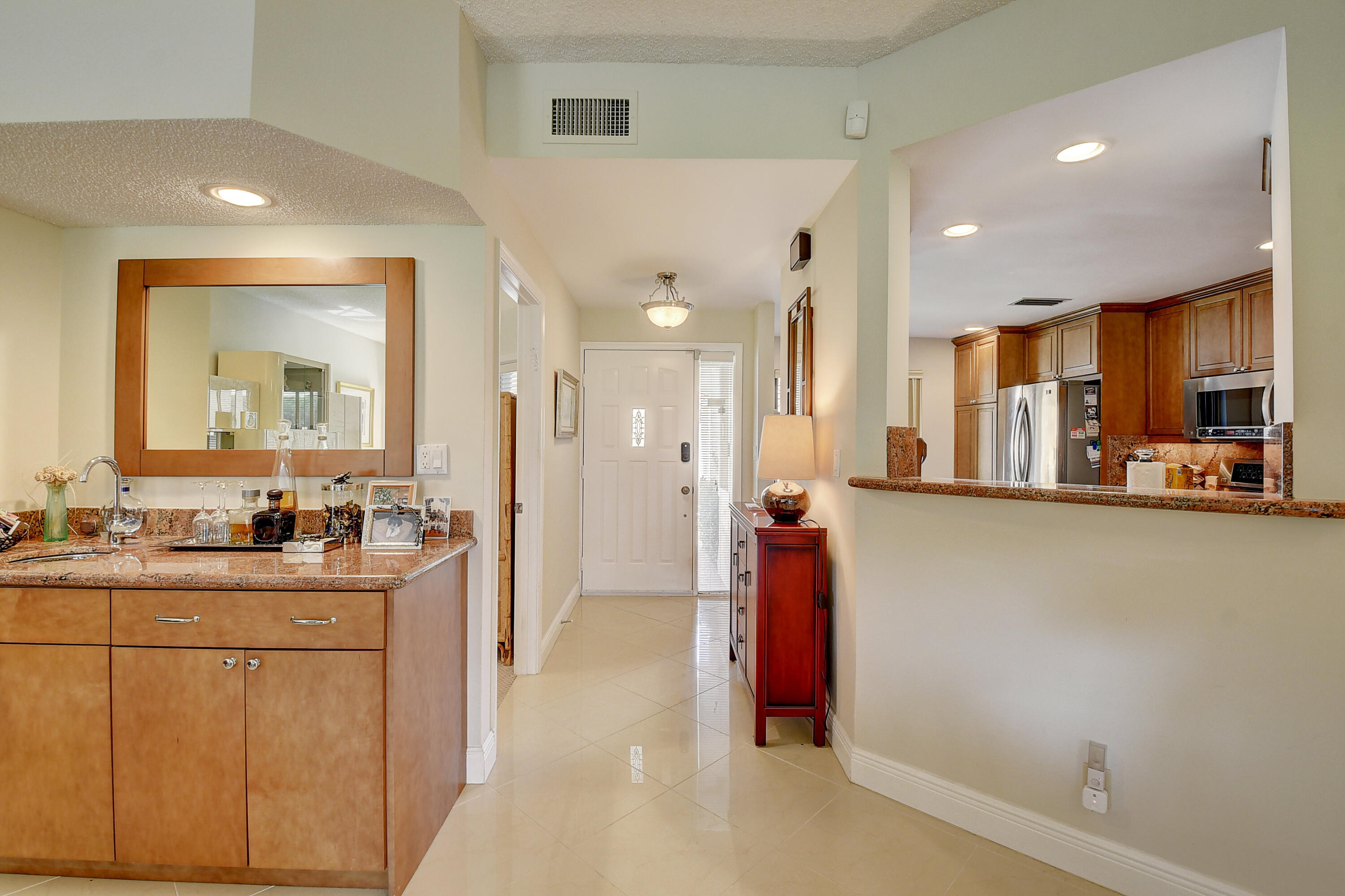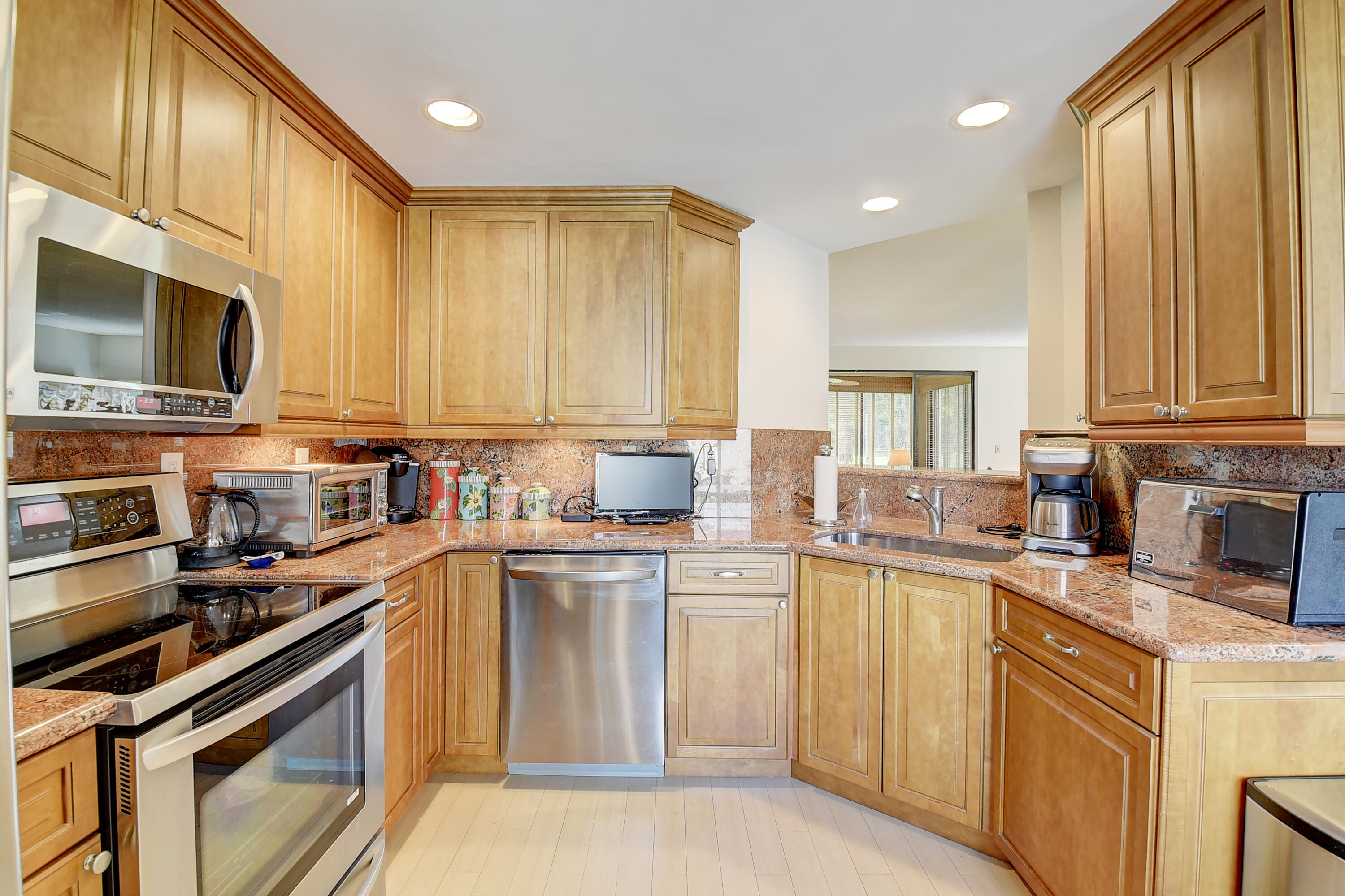 SEIZE THE OPPORTUNITY ! DRAMATIC PRICE REDUCTION ! THIS HAS IT ALL ! UPGRADES GALORE ! NEW ROOF ! JUST MAKE AN OFFER !1st floor. Large porcelain tile (on diagonal) Redesigned custom kitchen w/ ss appliances & granite counters. Unique custom wet bar. 3 true bedrooms + Florida room/den. 2 bedrooms w/ en suite baths. Custom closets. Seller to give carpet replacement credit w/acceptable offer. Both bathrooms remodeled , & 'Smart' toilet in 2nd bathroom. Direct golf view. Newer roof ! Covered reserved parking at your door. Storage closet in courtyard. Steps to beautiful resort style community pool. Club membership NOT MANDATORY, but readily available w/ no equity buy-in. Class A schools, close to shopping, services, houses of worship. 5 miles to the beach. MOTIVATED SELLER