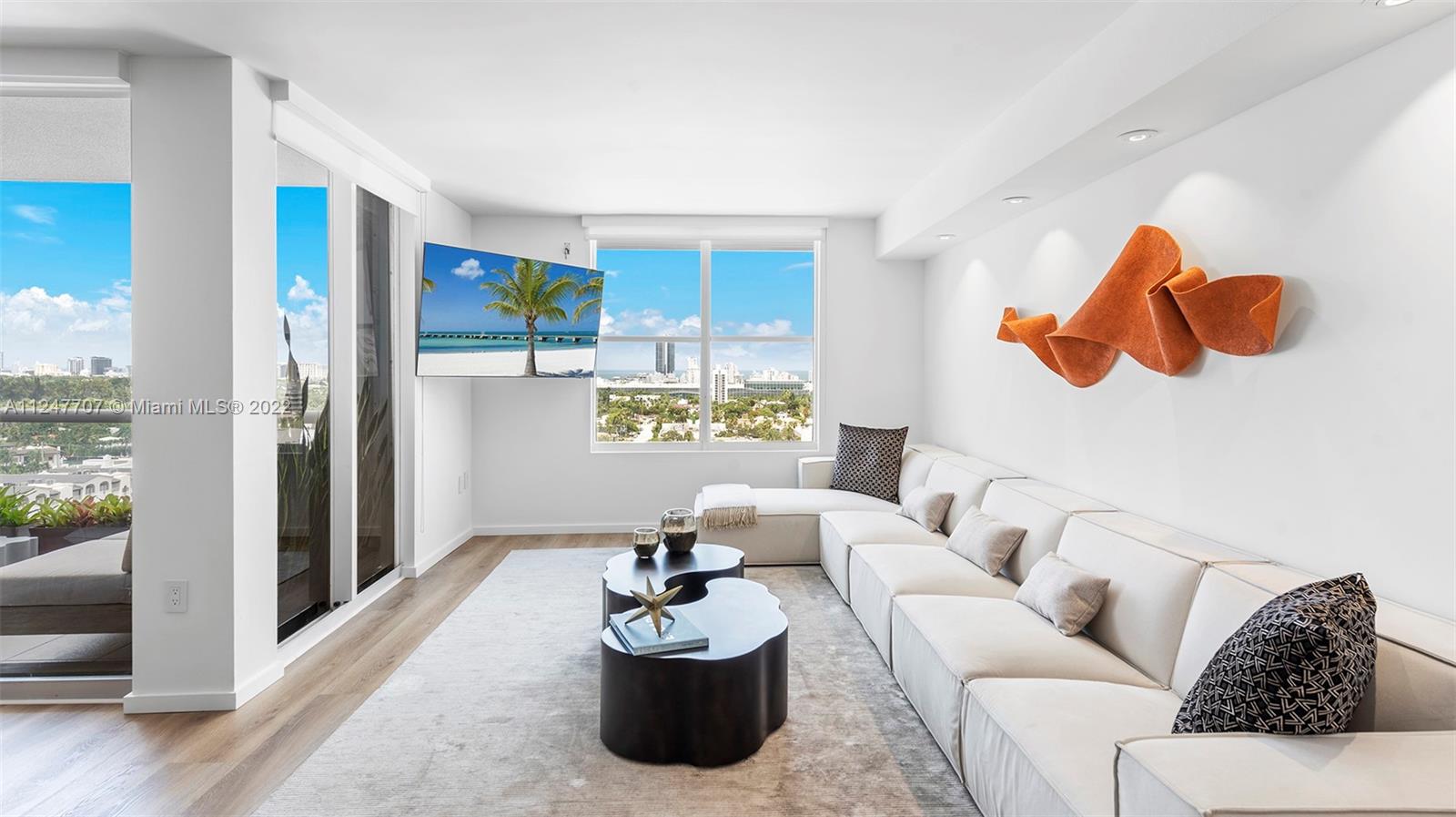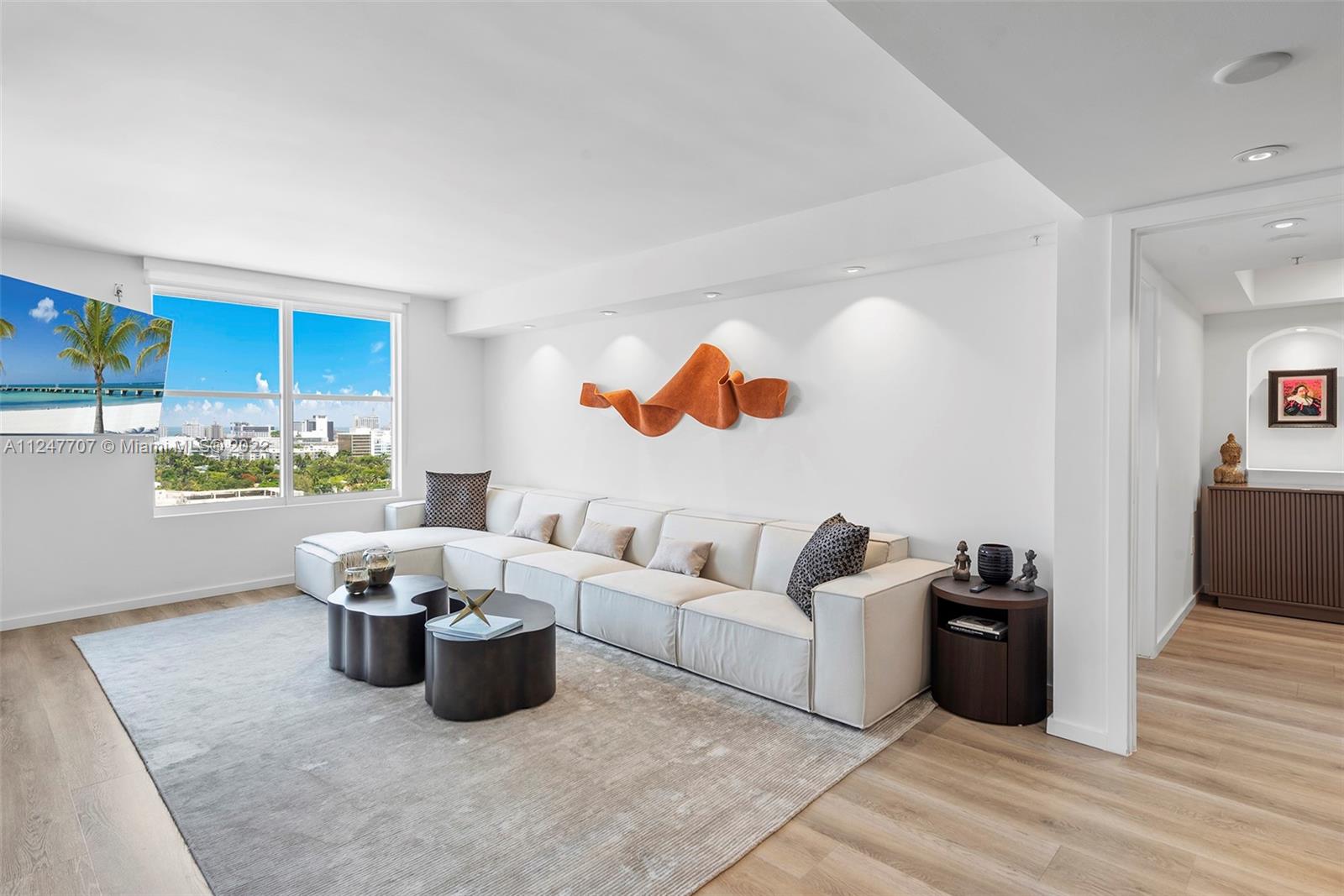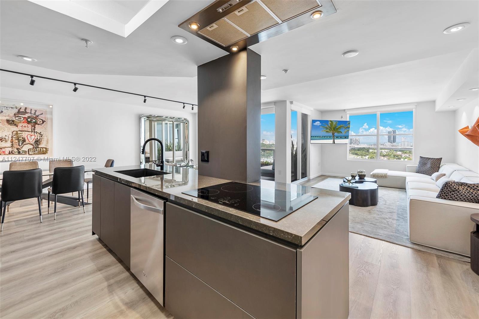 Enjoy ocean and skyline views from this rarely available 3-bedroom line in Sunset Harbour South. This 3 bed/2.5 bath unit was impeccably renovated and redesigned into an oversized 2 bed/2.5 bath w/extra large living/dining area + open den, perfect for entertaining or home office. Complete with an open chef’s kitchen, custom cabinetry, beautiful wide plank floors, curated lighting fixtures & hardware, new bath vanities, automated shades & built out closets. Newer A/C, water heater & hurricane storm shutters. Eastern exposure w/ lots of natural light. Two oversized balconies. Full service building w/ waterfront pool, gym, hot tub, clubroom, 24 hr valet & doorman. Located in Sobe's most coveted neighborhood w/ marina, park, top restaurants & boutiques, co-working space, gyms & supermarkets.