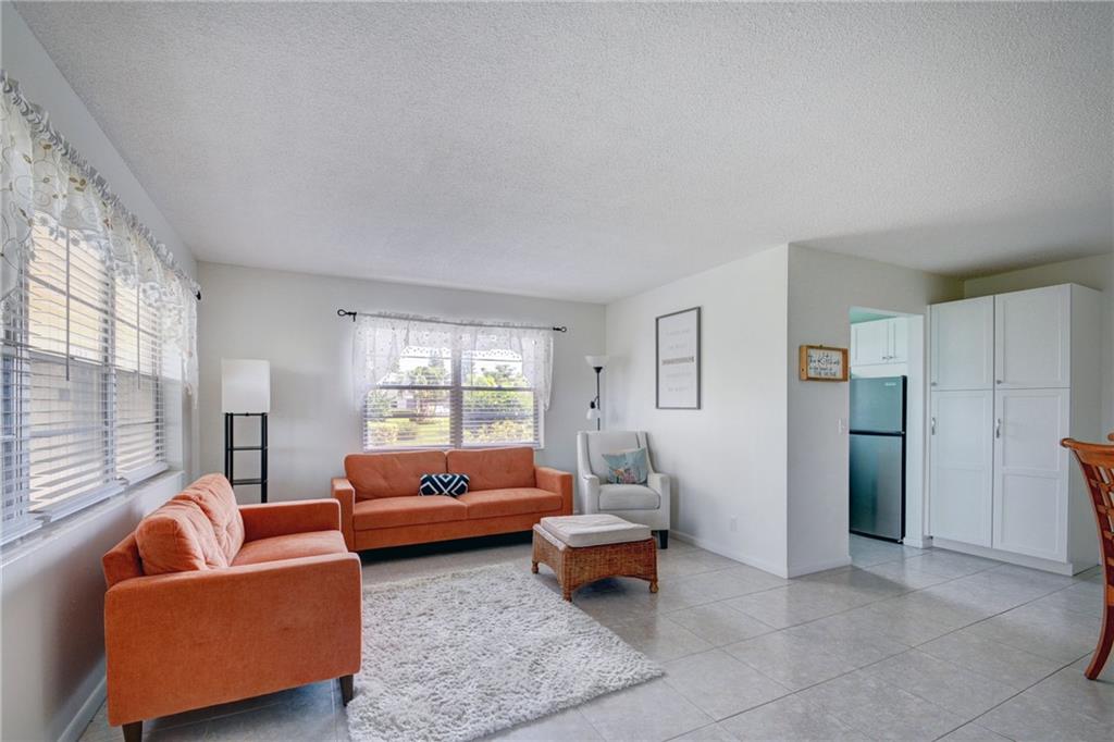 Welcome to your own little piece of paradise! Century Village West Palm Beach is a 55+ community with endless amenities to enjoy the South Florida lifestyle. This corner unit on the 1st floor is a fully furnished turn key 1 bedroom, 1 and a half bath condo which has been remodeled throughout. It offers a bright open floor plan with an enclosed patio. Upgrades to the unit include: tiled flooring, ceiling fans, remodeled kitchen with new white cabinets, stainless steel appliances, and a new vanity in the bathrooms. The community has 24 hour security and the Club House offers: fitness center, in/outdoor pools, sauna, billiard room, library, card and activity rooms, beauty parlor and barber shop and even a theatre for movies and shows! Perfect for primary resident or seasonal owners.