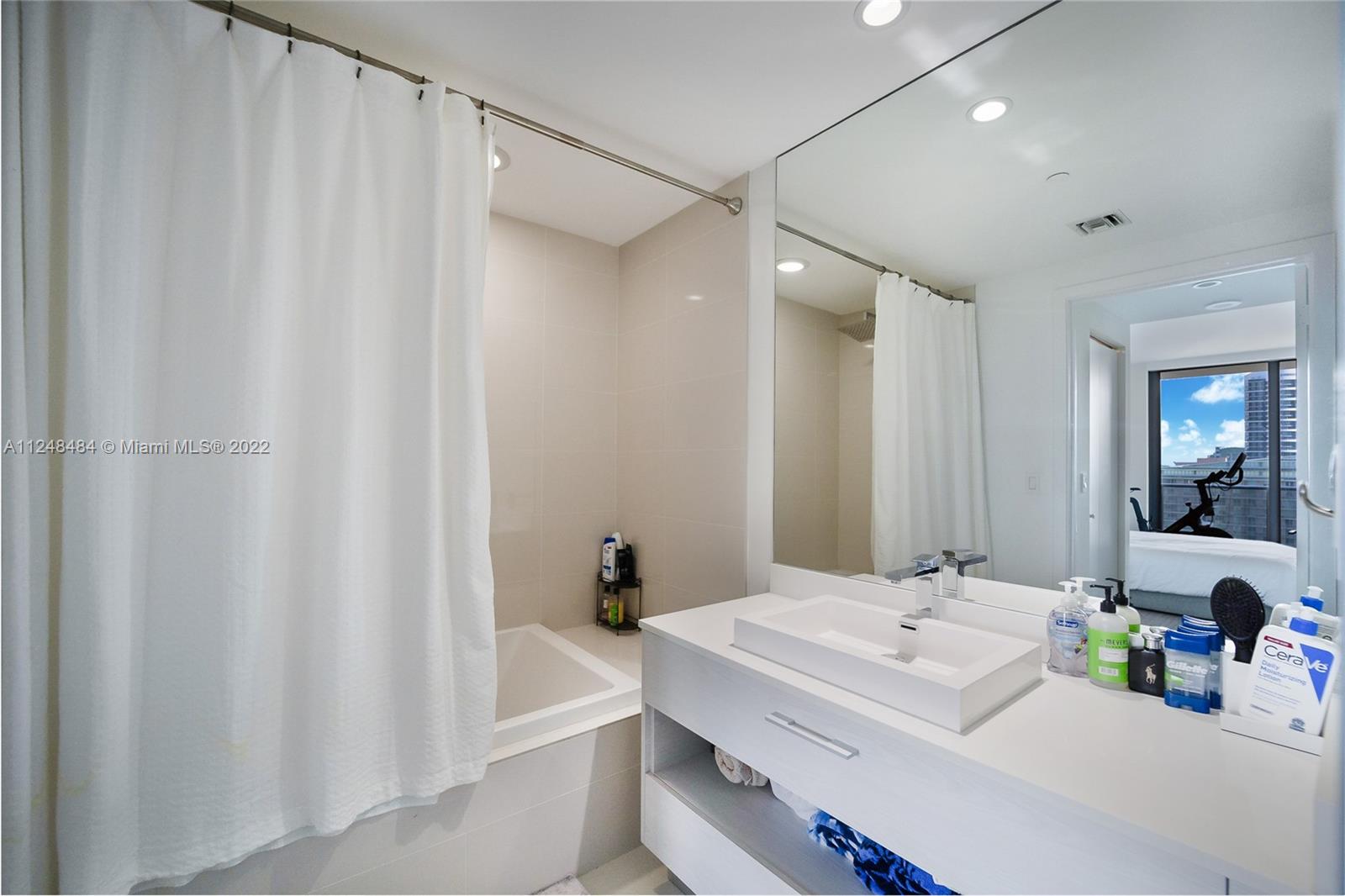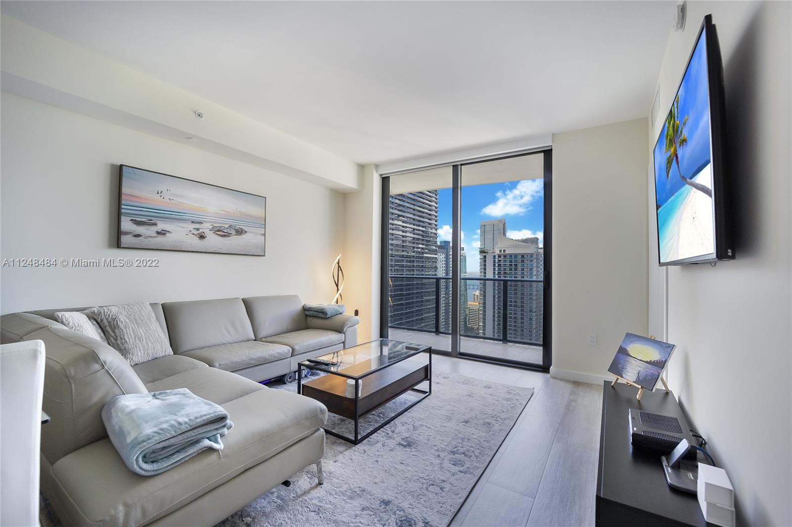 Bring your luggage and move into this show case furnished apartment. Located at the heart of Brickell with a breathtaking view. 1 bedroom + den can be easily converted to two bedrooms, two full bathrooms. Remote control blackouts in the bedroom and sheer shades in the living room. California closets in her and his closets. Beautiful furniture and even two TVs! High end appliances with a washer and dryer in the unit. Once you walk into this unit, you will never want to leave. Anice size balcony with an amazing view. The building has great amenities with two pools, a professional gym, sauna, party area. The location can't be better with Brickell City Center on one side and Mary Brickel Village on the other side. 1 parking space (valet)