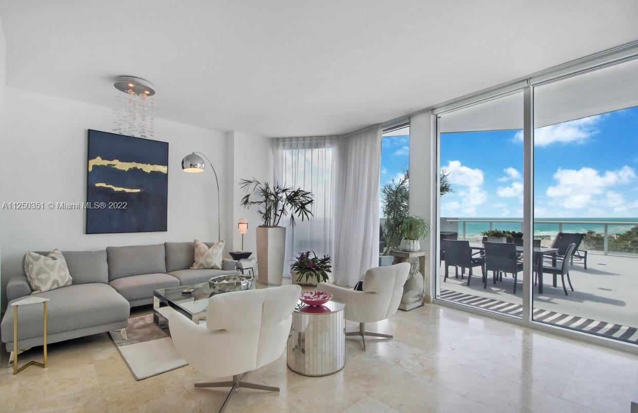 A beautifully updated and exquisitely furnished unit with unobstructed oceanfront views, this spacious home has floor to ceiling walls of glass, marble floors, two full baths, and a magnificent oversized terrace that is a tropical oasis of tranquility and a dream for entertaining. Enjoy outdoor living at its best! Bel-Aire on the Ocean is a luxury boutique building with 24-hour concierge, assigned and valet parking, gym, bike and surfboard storage, newly renovated pool and barbecue area, excellent on-site management, and beach service. Located midway between Bal Harbour and South Beach, you can walk to restaurants, stores, and shops, and stroll along the new beachfront walkway that runs most of the length of Miami Beach. A must see!