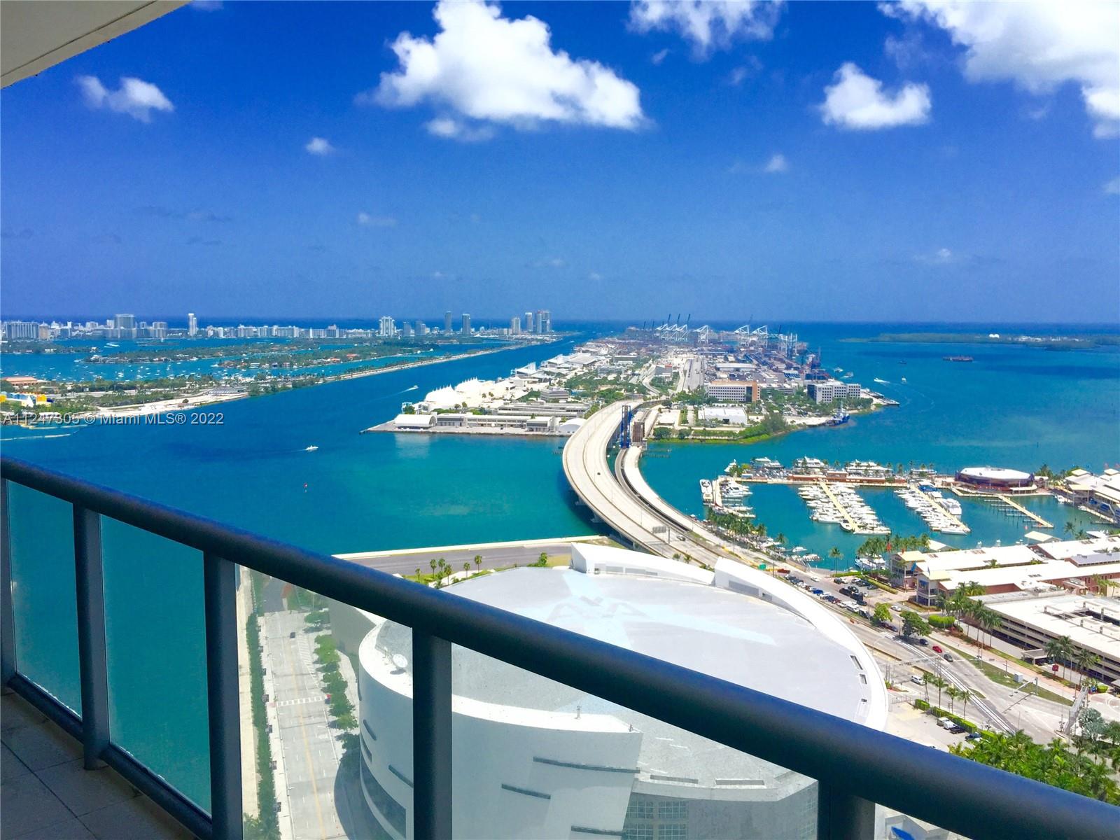 Spectacular 1 Bedroom and 1.5 Bath, Amazing views of Biscayne Bay, the ocean and the Downtown. Marina blue is a full service building located in front of the FDX Arena (former American Airlines Arena) infinity pools, jacuzzi, top of the line gym, voley ball court, mini market and much more