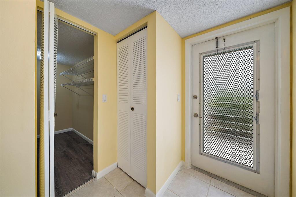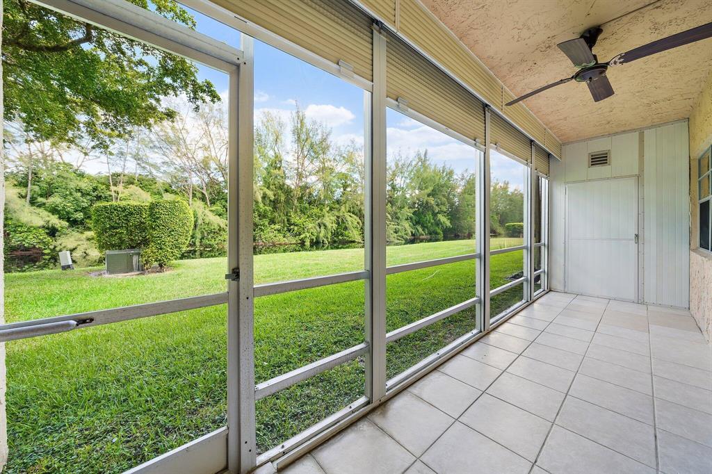Great 1st floor unit with a large screened patio for coffee in the morning and serene views of the lake and natural area in the back. An active 55+ community with many amenities. Spacious floor plan with great closet space. New hot water heater, stove and dish washer. A/C 2003. Close to shopping and dining as well as the T-Pike and only minutes to Palm Beach international. One designated parking space per unit. No commercial vehicles, no lease first year. One pet under 30lbs.