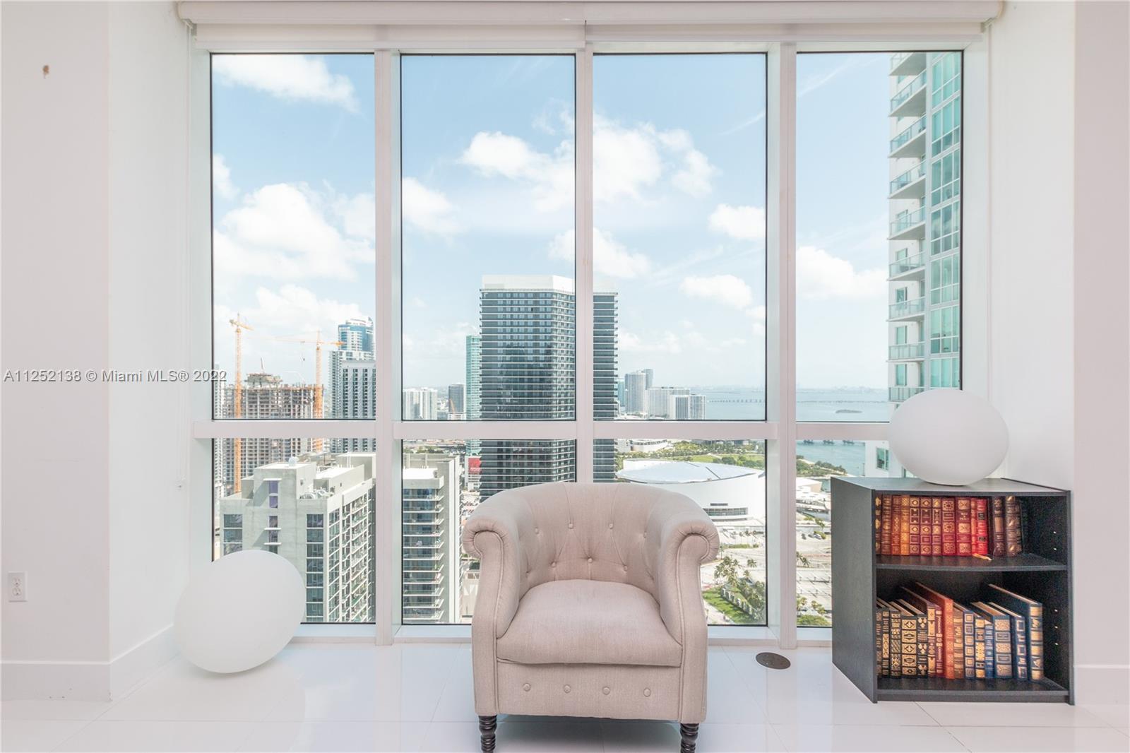 Located at the heart of Downtown Miami, these 3 bedrooms, 3 full baths unit boasts an amazing 180-degree panoramic views of Biscayne Bay and City. With floor to ceiling windows, white porcelain tile floor in the entire unit and wood texture tile at the balconies. "2 assigned parking spaces + storage bin". The building has 2-acres of amenities which are situated 100 ft above Biscayne Bay with water views that residents can enjoy while relaxing poolside. Enjoy a 4-story, 35,000 sf clubhouse offering a full-service spa, health & fitness center, movie-theater, game room, lounge and more. Live steps from PAMM, Arsht Center, and Miami Heat. Head south and you’re in Brickell; north you’re in Design District and Wynwood; cross the causeway and you’re in South Beach.