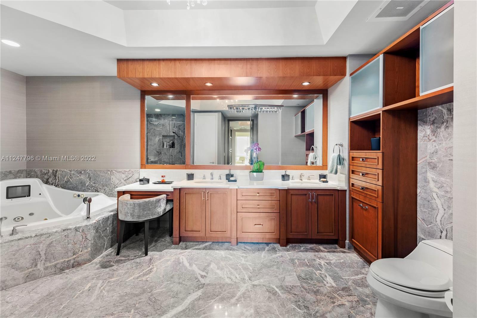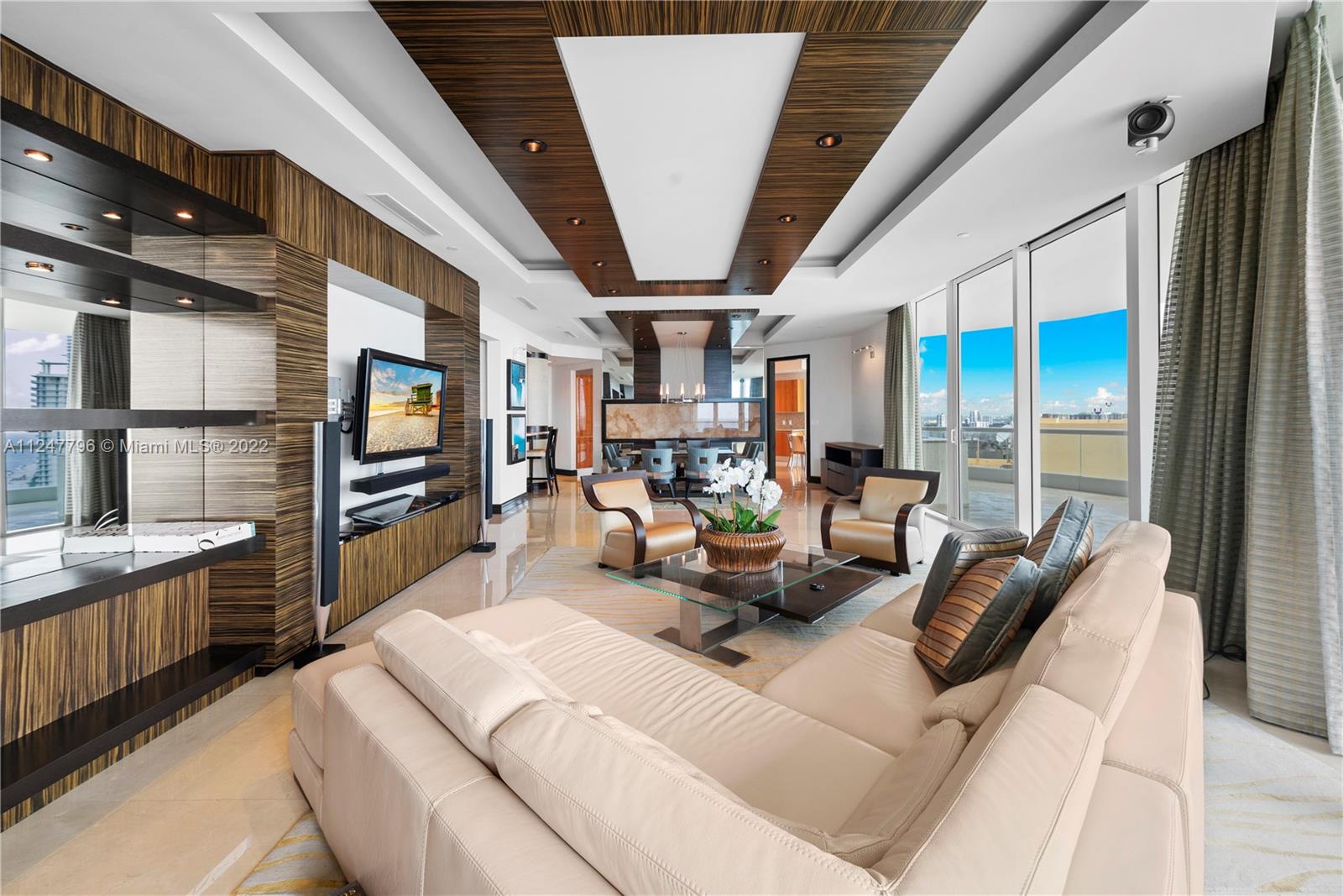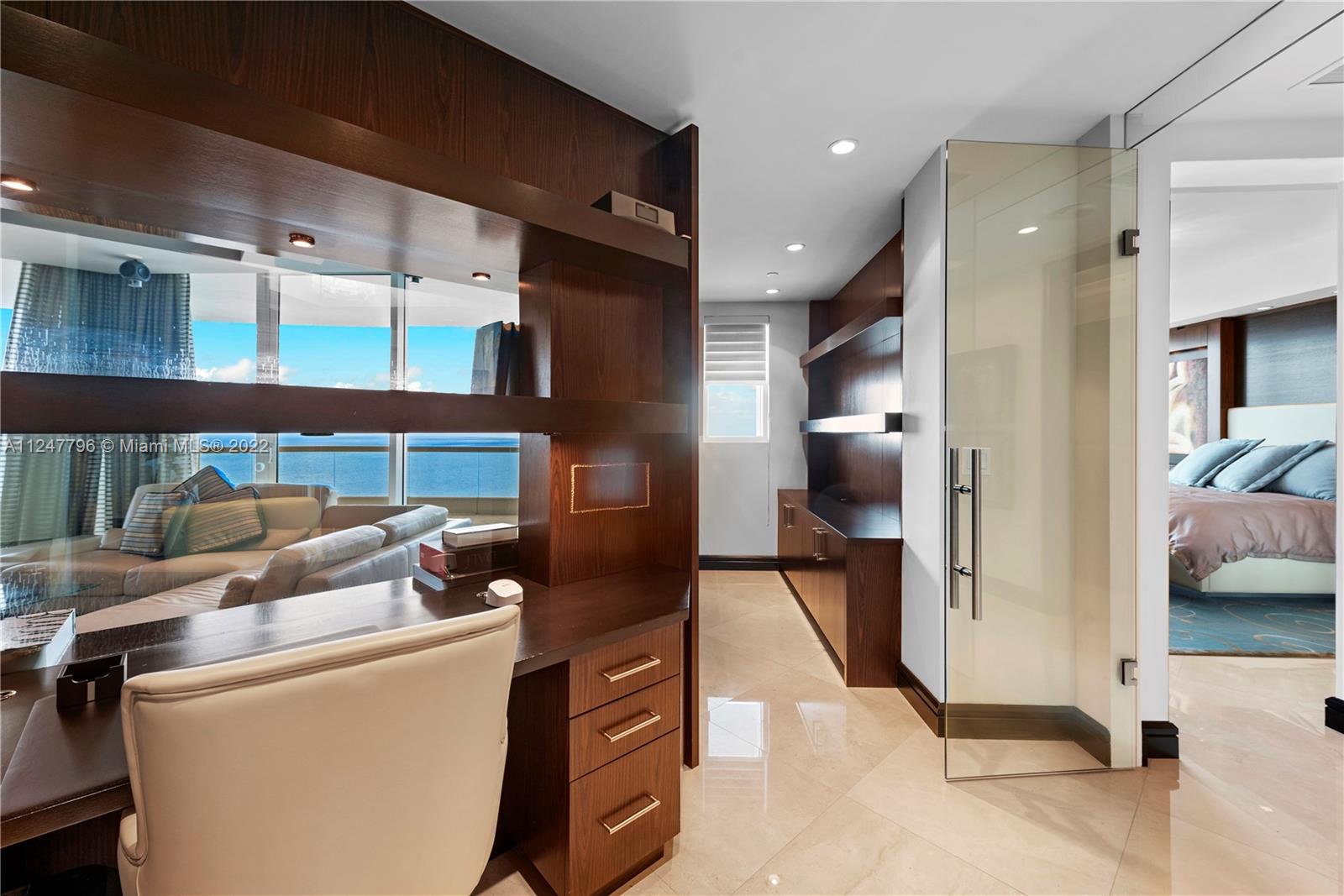 Paradise awaits you in the 32nd floor unit with over 3,700 sf of oceanfront living. 4 bedrooms, 5.5 baths, plus den. True elegance & Luxury is found here with views of the intercoastal, city, ocean and beach. A private elevator entry welcomes you into a bright and spacious living area with unobstructed ocean views. Professionally decorated with marble floors thought out and finished with the finest materials. Eat-in-kitchen boasts state-of-the-art Subzero, and Gaggenau appliances. Spacious and private the owner’s bedroom has a fabulous private office enclosed in glass with views to the water. Turnberry Ocean Colony is one of Sunny Isles’ most desirable oceanfront residences. Furniture can be purchased.