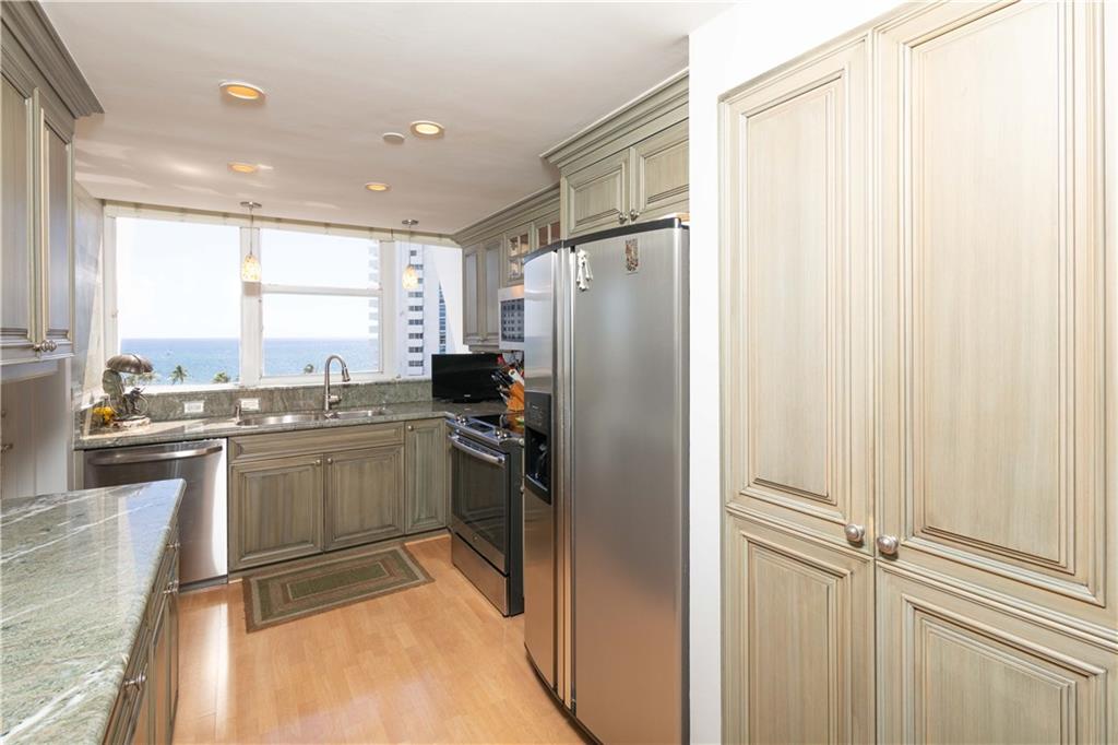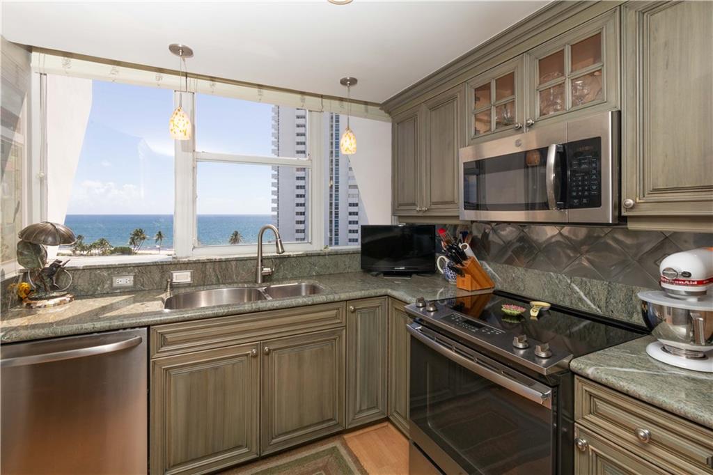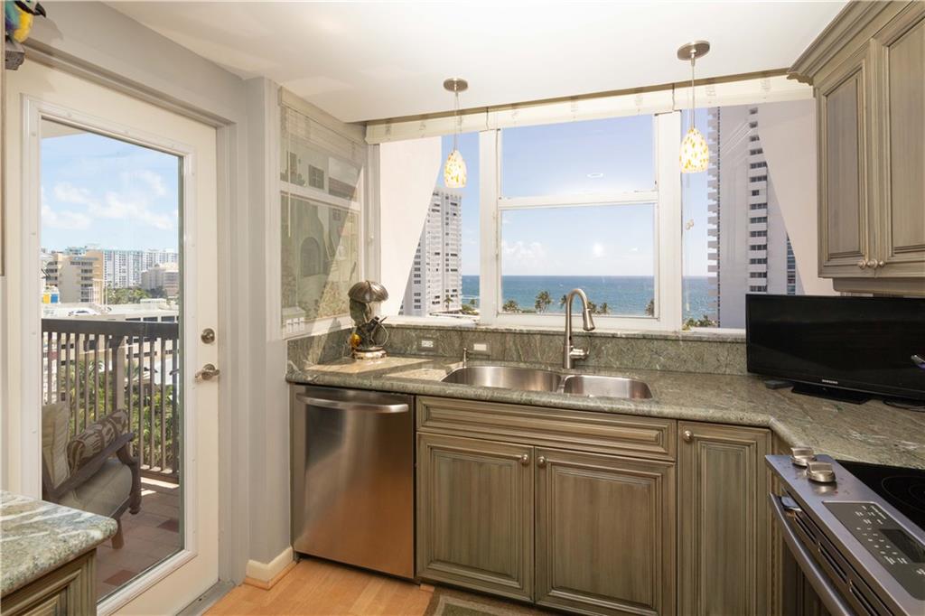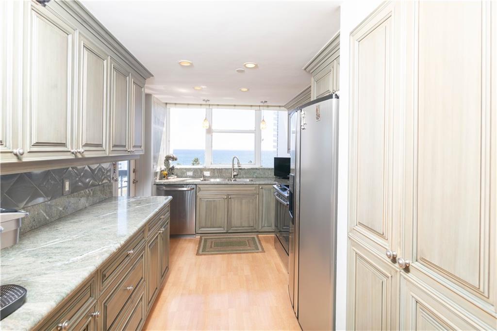 STYLISHLY UPDATED NE CORNER UNIT WITH OCEAN AND INTRACOASTAL VIEWS. OPEN AND SPACIOUS WITH TWO BALCONIES. UNIT FEATURES INCLUDE A LOVELY KITCHEN WITH SOLID WOOD CABINETRY AND ELEGANT GRANITE COUNTER TOPS. W/D IN UNIT. BOUTIQUE BLDG THAT IS VERY WELL MAINTAINED AND MANAGED. THE BUILDINNG FEATURES AN INCREDIBLE RESORT STYLE POOL WITH SEPARATE HOT TUB, BBQ GRILLS, TIKI HUTS. PET ALLOWED UNDER 25 LBS. SITUATED ACROSS THE STREET FROM GOLDEN SAND BEACHES AND BEAUTIFUL BLUE WATERS OF THE ATLANTIC OCEAN.