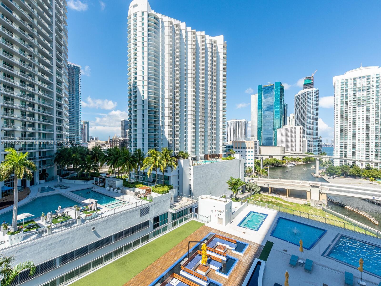 Live in this beautiful Mint-Riverfront/gated building. Corner unit, 2 bed, 2.5 bath with panoramic and unobstructed views from every room. Floor to ceiling windows, porcelain floors throughout the unit, modern kitchen with stainless steel appliances. Great amenities: heated pool, jacuzzi, fitness center, spa, club room, business center and much more. Centrally located near to restaurants, hotels and walking distance to the Brickell City Centre. 15 minutes to Miami International Airport and to Miami Beach.