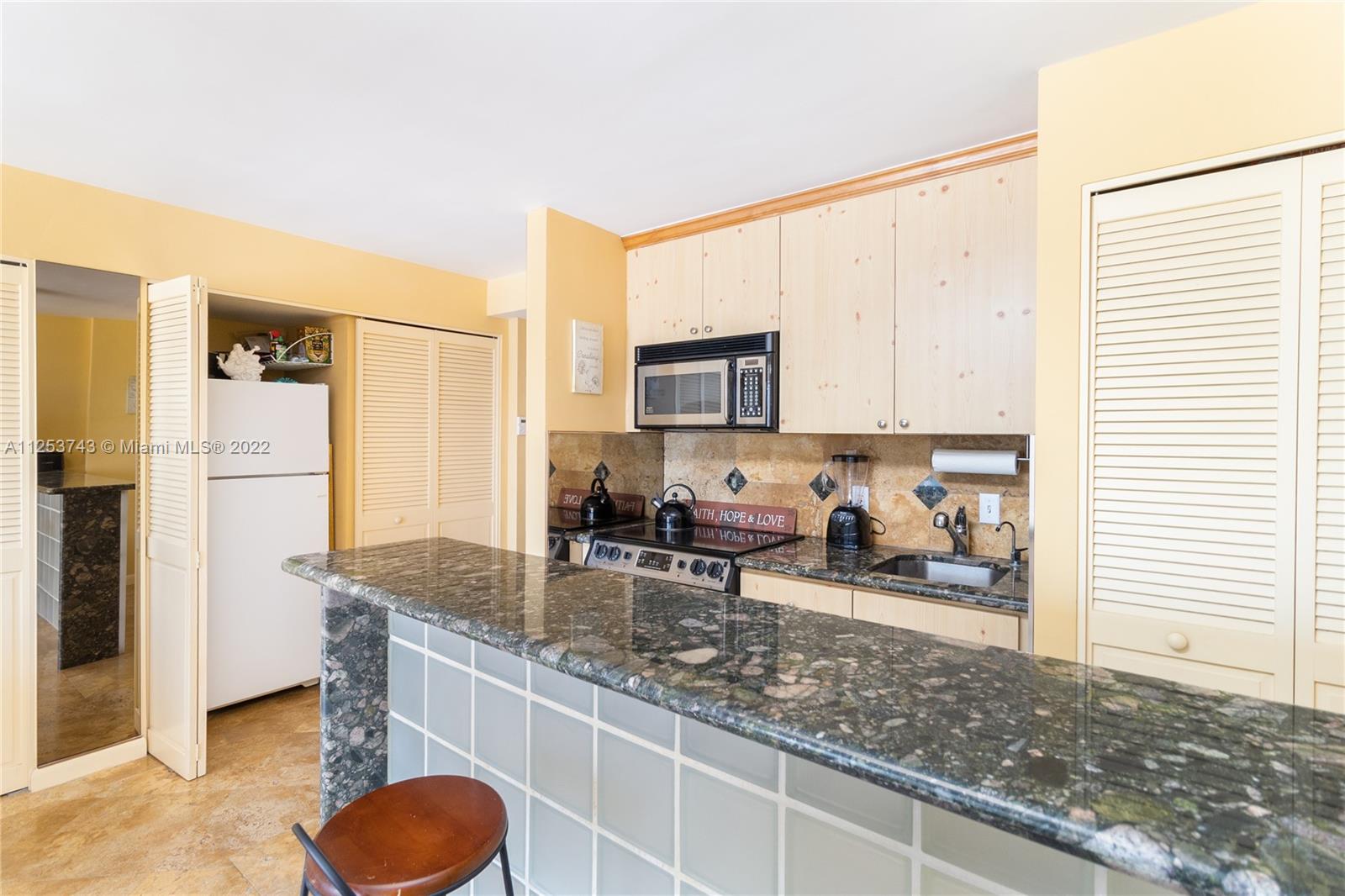Rarely available penthouse with unobstructed Ocean views! Completely updated with imported marble floors throughout, smoothed ceilings, open kitchen with granite countertop bar, stainless steel appliances, granite countertops w/designer backsplash, updated bath w/marble finishes & glass shower doors, custom built-ins including Murphy bed w/storage, washer dryer in unit & impact sliding doors leading to spacious open balcony to take in the ocean breeze! Ready to move right in to your perfect beachfront paradise as most of the furnishings are included. Unmatched in popular south of 5th St Bldg w/heated pool, 24hr security & low maintenance fee which includes cable, internet, oceanfront community room overlooking spacious pool deck, and more. Building improvements in progress- paid by Seller.