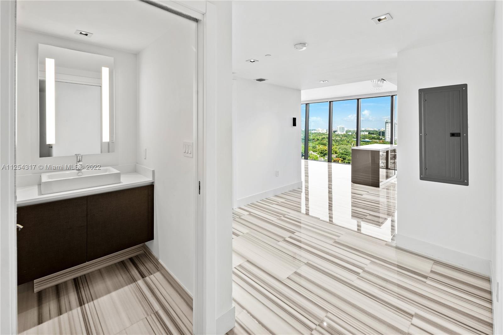 Welcome to Echo Brickell! This luxury 1 Bed, 1.5 Bath condo enjoys spectacular bay and city views of south Brickell; reminiscent of overlooking Central Park. The residence comes equipped with beautiful Italian kitchen cabinets with high end appliances by Sub-Zero, Wolf and a Bosch Espresso machine, marble floors, closet shelving, built-in BBQ on the balcony, stackable washer and dryer in unit, electronic shades, built-in speakers and more. Echo Brickell residents have access to a beautiful pool, jacuzzi and fitness center in the middle of the building with some of the best views in the city. The location is ideally situated for ease of access all while being a short distance to shopping, dining, and most major conveniences.