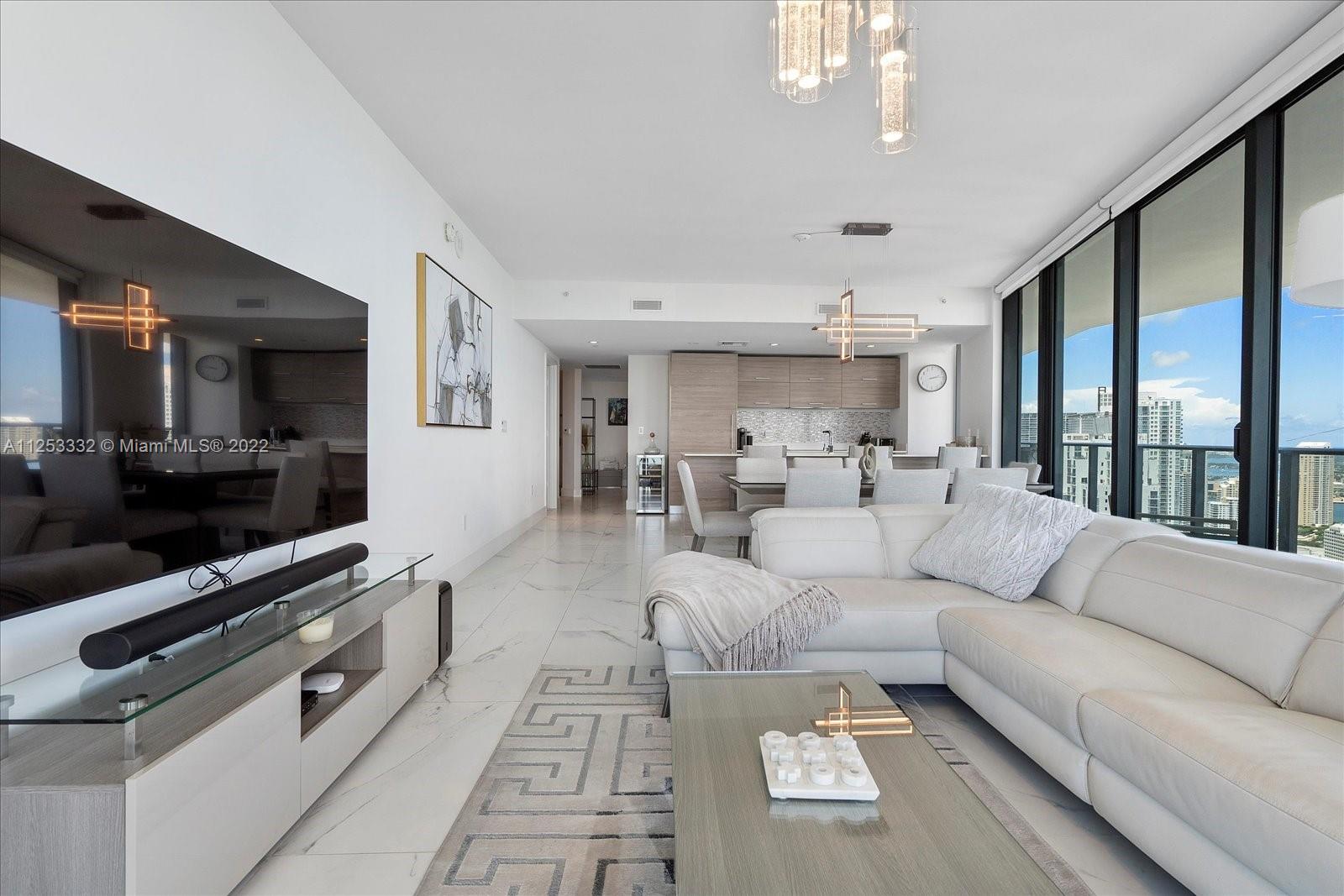 3 beds PLUS modified DEN, 2.5 baths with large wrap around balcony. Modern kitchen and stainless steel appliances. Porcelain tile floors throughout. Electric blinds in all bedrooms. Washer/dryer in unit. 1 assigned parking space. Bar, spa, gym, private theater, party room, exclusive private pool and rooftop jacuzzi and restaurant on site. Prime location in Brickell.