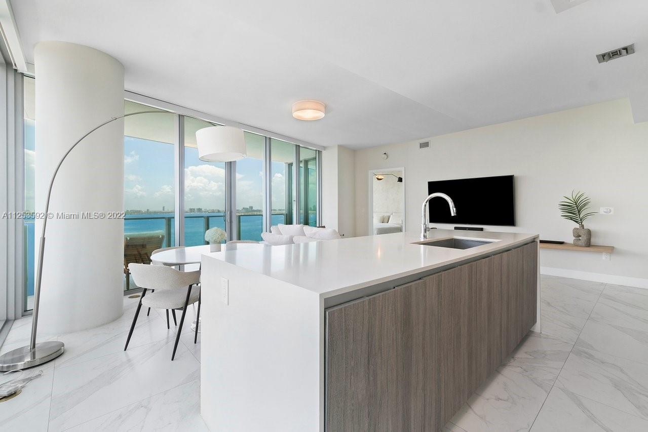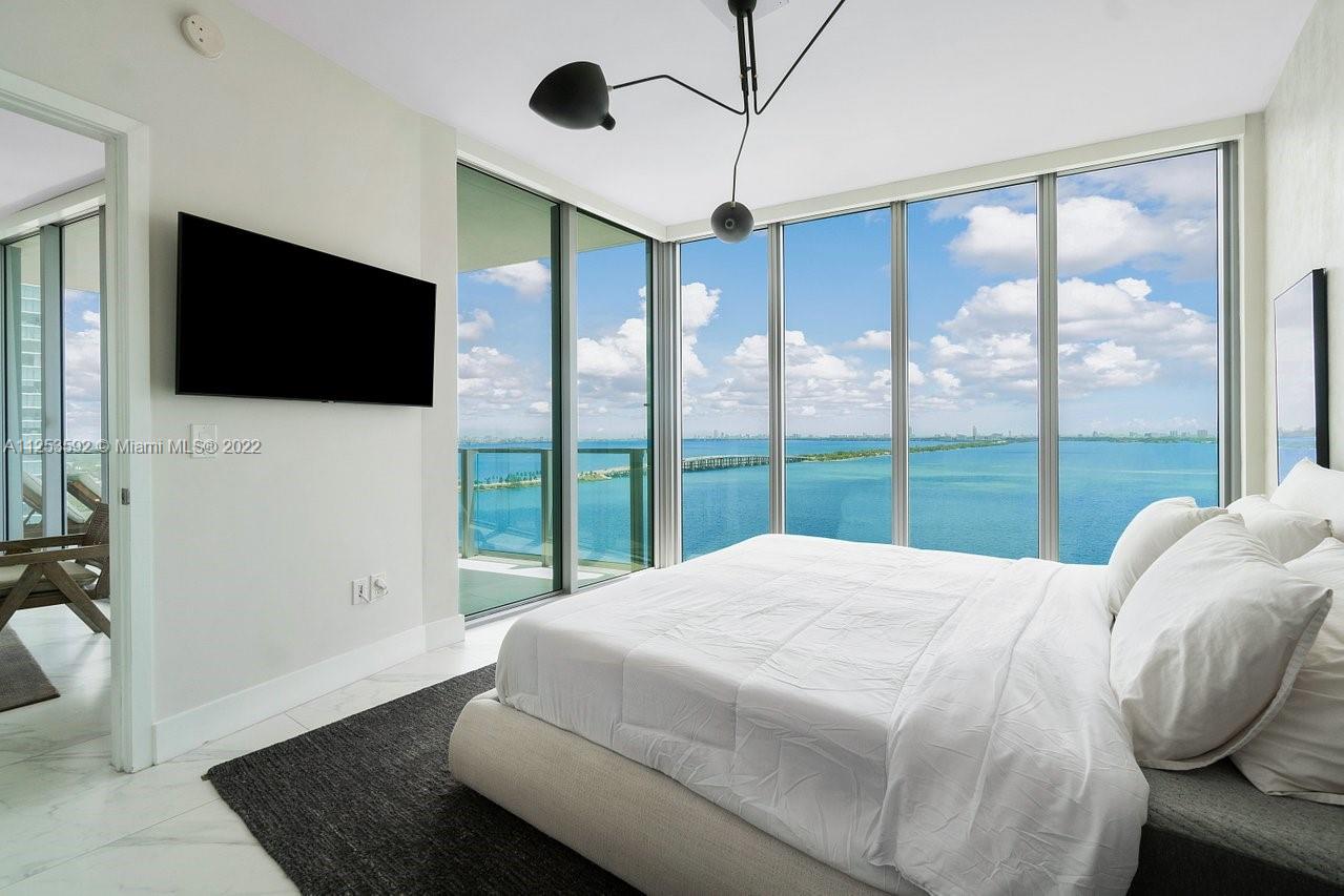 Picturesque, luxury condominium at Biscayne Beach in Miami Beach's highly sought-after Edgewater neighborhood. Offered fully-furnished by Restoration Hardware, the NE corner location on an elevated floor offers stunning direct bay views. 3 bed, 4 FULL bath, top-of-the-line Miele appliances, marble flooring throughout, and private elevator foyer. Building designed by legendary Tom Filicia, offers a zero-entry pool and lap pool, two tennis courts, half basketball court, beach club with cabanas and beach volleyball area overlooking the bay, towel service, bar, social rooms, fitness room, spa with sauna, steam room, massage rooms and a resident dog park.