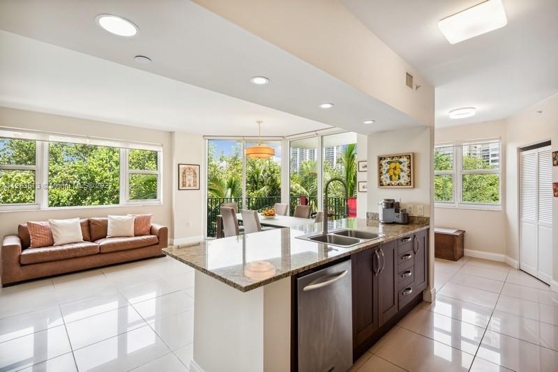 Two-bedroom, two bathroom condo for sale in resort-style living of Turnberry Village. Large master bedroom. Four walk in closets and spacious island kitchen. New renovated showers with mosaic tiles in both bathrooms, new light fixture in dining room, new faucets in bathrooms, new faucet and sink in kitchen, new ceiling fan in master bedroom. New Nest thermostat. Close to Aventura Mall, A+ schools and places of worship. Ten mins to the beach. Amenities include a game/billiard room, fitness center, yoga/dance room, children's play area, pool, hot tub, sauna, conference room, and clubhouse! 24 hr valet parking. This corner unit comes with one parking space.