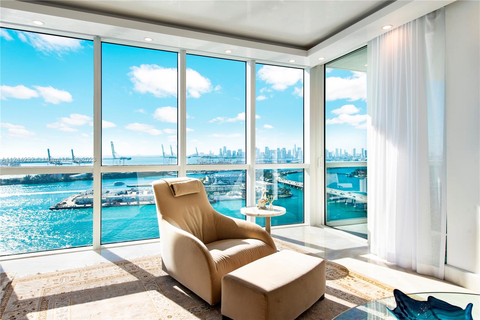 Luxurious lifestyle awaits you in Miami Beaches’ most desirable south of fifth location. Private lobby you are greeted by the stunning wide bay water views and downtown city skyline. East facing balcony to enjoy your morning coffee. Spacious living room facing SW is filled with warm winter sunlight. Floor-to-ceiling windows throughout, allows you to entertain in your modern kitchen and dining area in the evening which faces NE overlooking the colorful Miami Beach city night lights. Exquisite features include marble floors, venetian plaster ceilings, recessed lighting, integrated music, every bedroom has unique ensuite bathroom. Amenities include fitness center & spa, 5 star resort pool, cafe, tennis court, valet, adjacent Miami Beach Marina & walking distance to many top local restaurants.