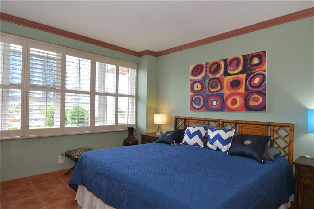 NOW REDUCED. BEST VALUE IN BUILDING. THIS UPDATED EXTRA LARGE 2 BEDROOM, 1170 SF, OFFERS A BRIGHT, SPACIOUS LIVING ROOM, WITH OUTSTANDING VIEWS OF WATERWAY AND NEIGHBORING AREA. THIS UNIT HAS DESIGNER TILE FLOORS, PLANTATION SHUTTER WIDOW TREATMENTS IN ALL ROOMS, IMPACT WINDOWS RECENTLY INSTALLED, PLUS IMPACT GLASS DOOR TO LARGE OPEN BALCONY. THIS UNIT OFFERS THE LARGEST MASTER BEDROOM IN BUILDING, PLUS A VANITY DRESSING AREA. SPACIOUS WALK-IN CLOSET. LARGE EAT-IN KITCHEN WITH NEW HIGH-END APPLIANCES JUST INSTALLED. GREAT CABINET AND COUNTER SPACE. THIS SPOTLESS UNIT IS MOVE-IN READY AND IS TRULY A GREAT VALUE. THIS BLDG. ONLY, OFFERS "AIR CONDITIONED" HALLWAYS. BLDG'S GREAT LOCATION ALLOWS RESIDENTS: WALK TO BEACH, BANKS, RESTAURANTS, POST OFFICE AND SHOPS. NO AUTO NEEDED. EASY TO SHOW.