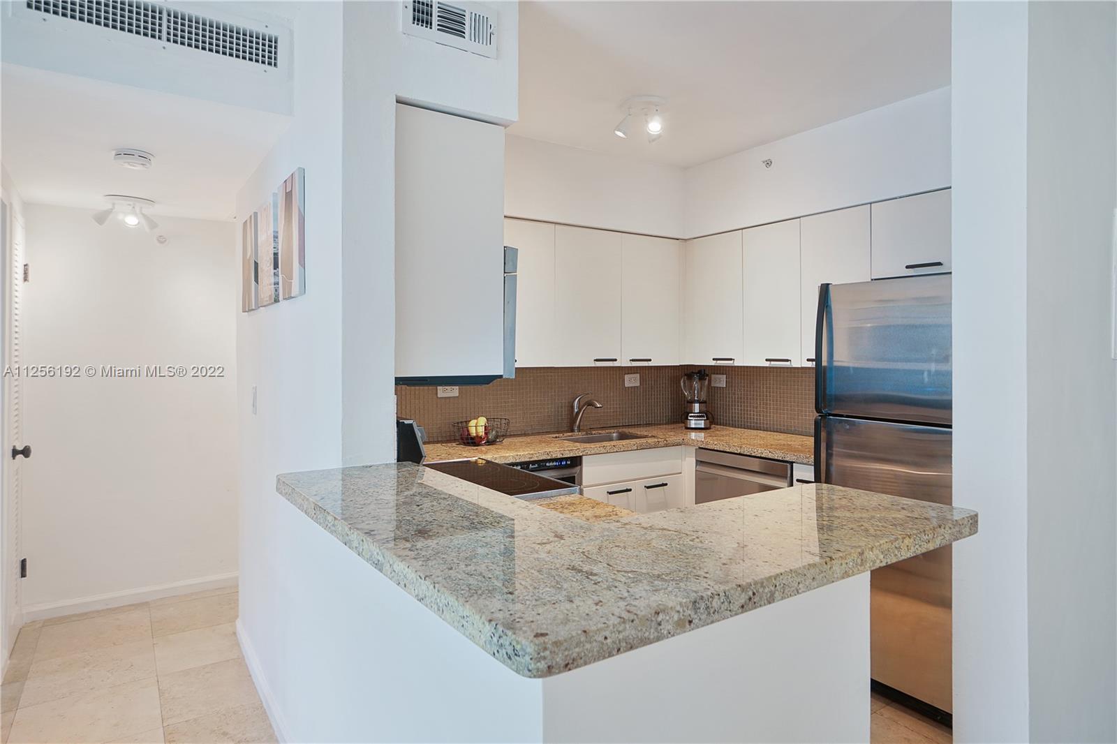 Resort Style Building with best views and amenities. This Condominium was remodeled in 2021, has a Balcony. Enjoy water views and Miami skyline views at nights. The kitchen has all stainless steel appliances, wine refrigerator and new stove and dishwasher. Terrazzo flooring through out the living area and wood imitation laminate in the bedroom. Huge bedroom with a wide open windows for lots of natural light. LOCATION!! Building by Miami Bay facing the beautiful Water and Miami View. Close distance to Lincoln Road & walk distance the the white Miami Beach Beaches. Amenities include 2 infinity pools, great jacuzzi, world-class fitness center. Yoga, spinning, boot camp classes, basketball, day spa/salon, restaurant with full pool lounge service, on-site dry cleaners. Invest, live, enjoy!