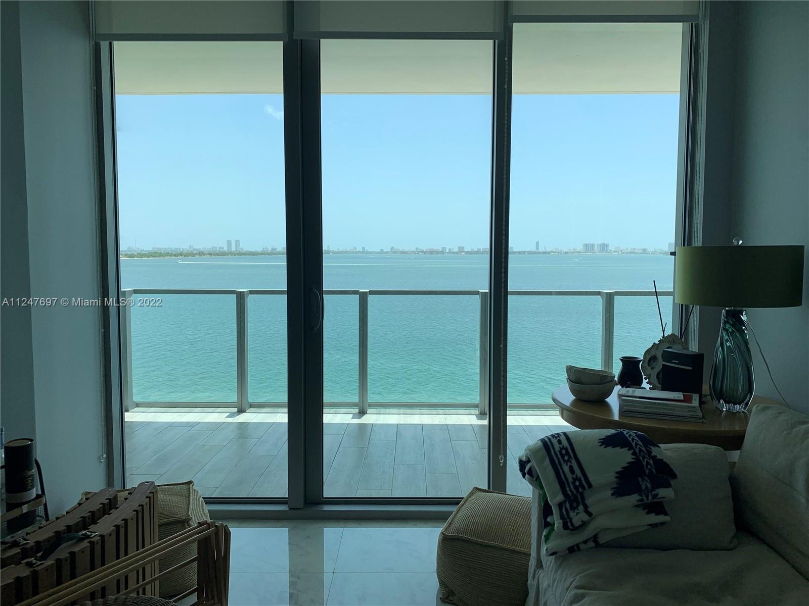 Spectacular 2 Bedrooms + Den with direct water views from everywhere. Private Elevator/foyer. Unit comes with a Storage and Parking space on the same 4th floor. All furnished. Den is set up as an office or could be a 3rd bedroom for guests as has a convertible bed. Top of the line appliances and building amenities such as: tennis courts, half basketball court, spa, business center, children play area, two pools, cabanas, etc. Edgewater neighborhood is located in the heart of it all: easy access to the causeways to Miami Beach, walking distance to Midtown and Design District, very close to Wynwood.