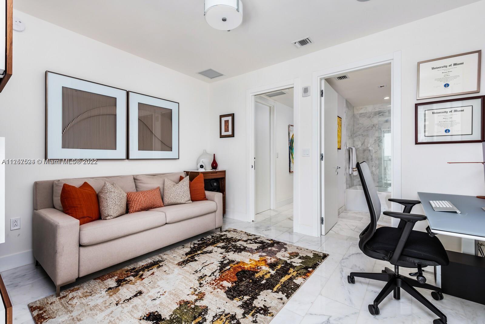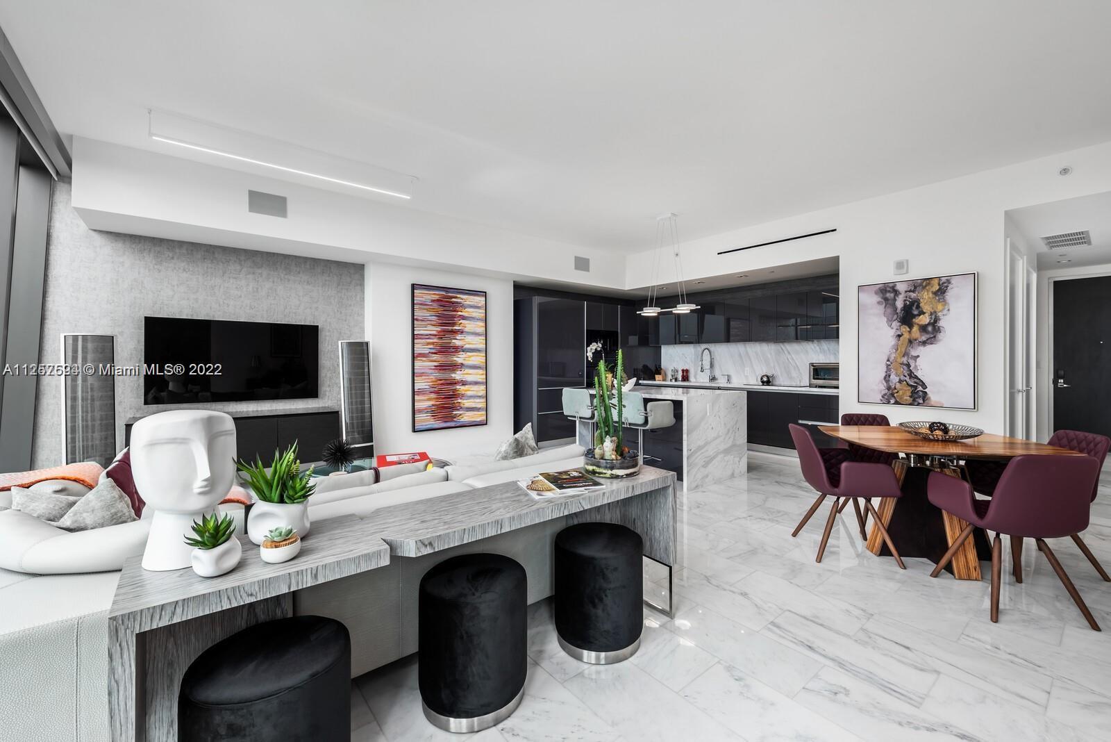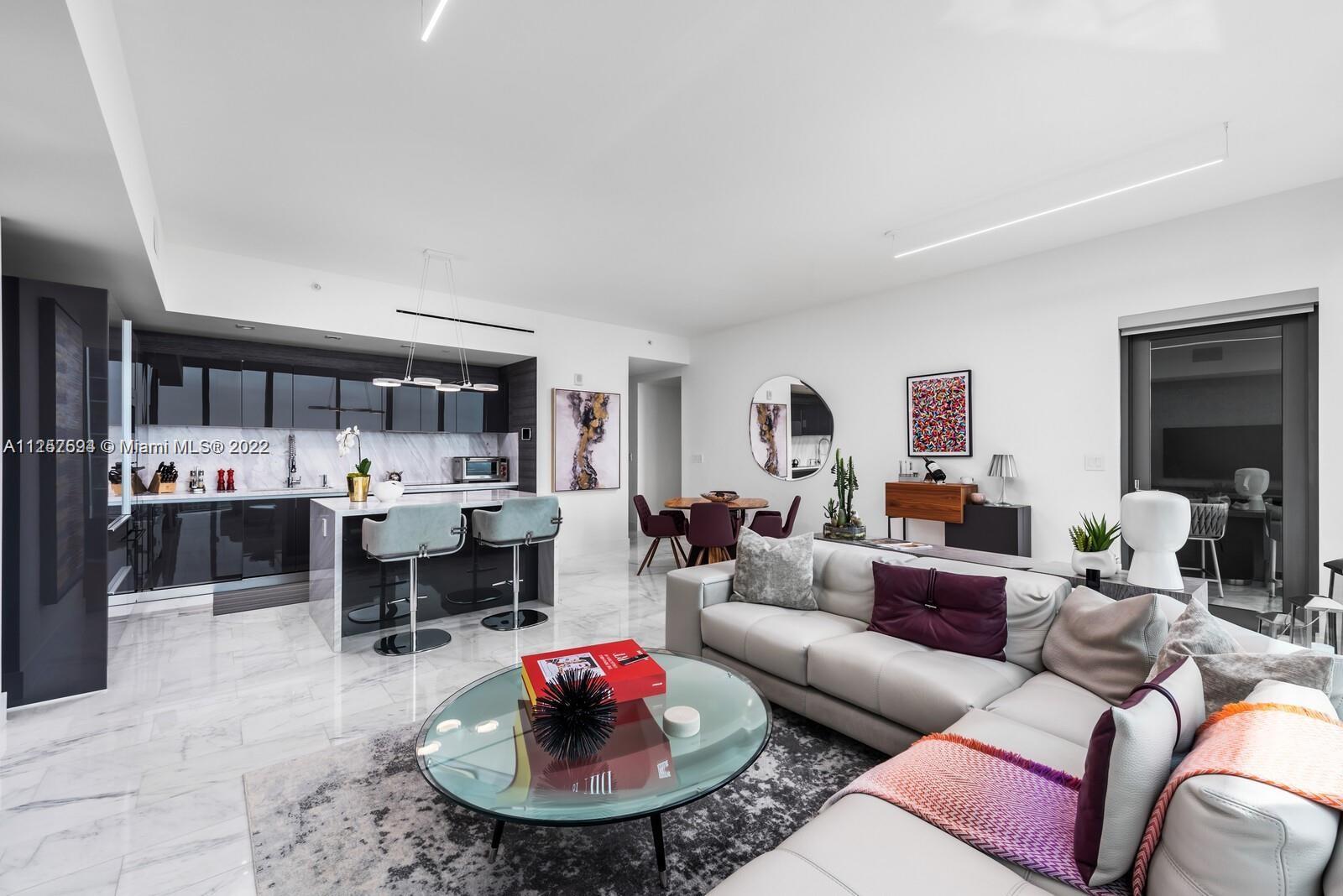 One-of-a-kind Carlos Ott-designed unit in ECHO Brickell spans 1,455sqft and showcases flawless luxury throughout. Expansive floor-to-ceiling windows frame city and water vistas while drawing natural light into the open-concept living space. Marble floors flow underfoot and the gourmet kitchen boasts high-end Wolf and Sub-Zero appliances, an island and sleek Italian cabinetry. Smart-home enabled with surround sound speakers along with one tanning balcony and second terrace with outdoor barbeque. Custom layout with 2 bedrooms and 2.5 baths including the primary bedroom with deep walk-in closet. Extra features include full size washer and dryer in unit and a host of building amenities including gym, spa, 24-hour valet, house car and multiple pools with spectacular bay and city views.