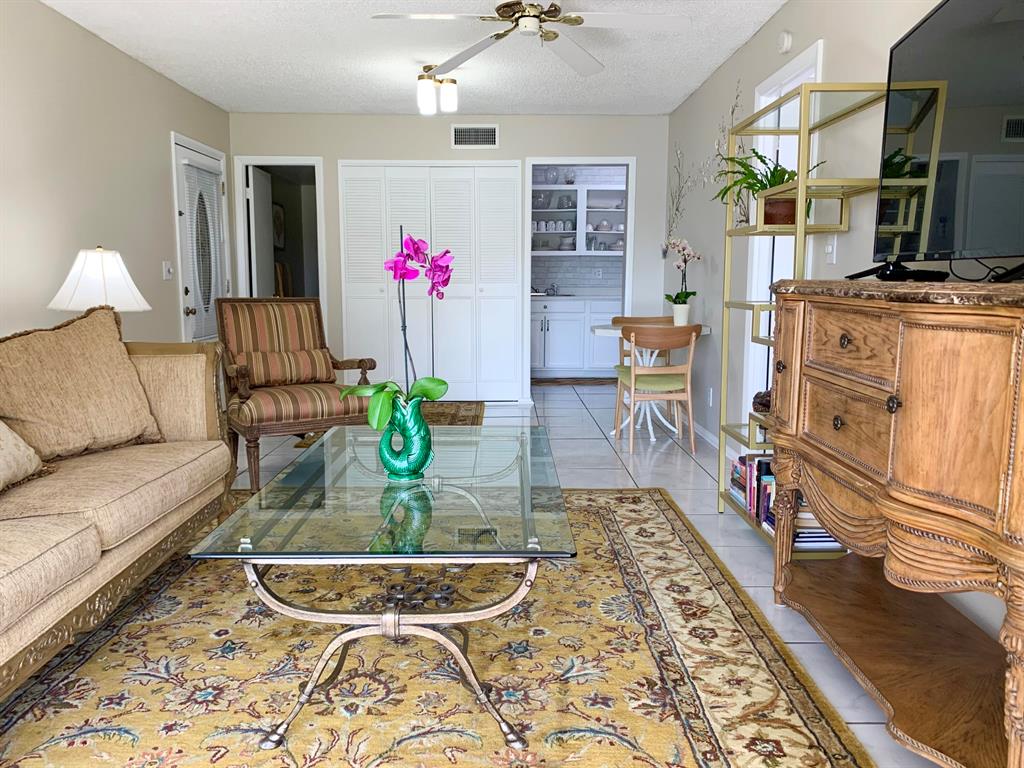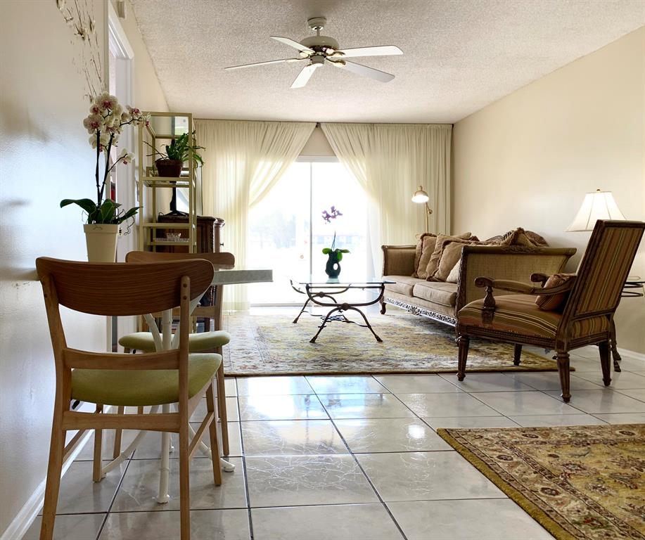 Beautiful ground floor unit available in the highly desirable, 55+ plus community of Golden Lakes Village, in West Palm Beach. Expansive one bedroom, one and a half bath with water view. The kitchen and bathrooms have been tastefully updated. There is a stackable washer and dryer combo in the large closet adjacent to the kitchen. Plenty of room in the walk-in closet and breezeway vanity in the owner's suite. Screened-in patio overlooks the lake. It's gorgeous at sunset! Close access to Florida's turnpike, I95, The Palm Beach Outlets, Palm Beach, and many wonderful restaurants. The community offers a library, card room, pool, hot tub, gym, shuffle board court, bocce courts, and clubhouse. Basic cable and water included. A nice place to call home.