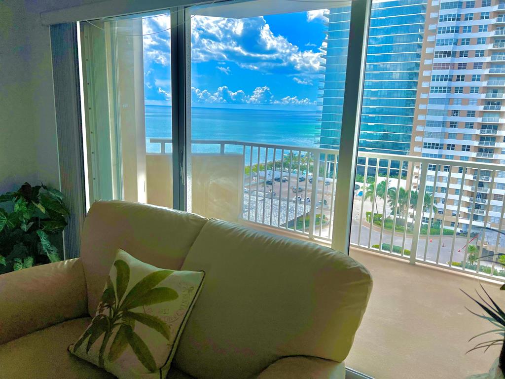 Welcome home to this very well kept condo with direct ocean views in the lovely community of The Hemispheres.Enjoy the ocean breeze and take in the beautiful views of the ocean and the intracoastal waterway from your private balcony.This unit comes furnished with views of the Atlantic Ocean from every window and door. The unit has a spacious master bedroom and living room that is open to the dining room. The kitchen has ample storage with nice cabinetry and a stainless steel fridge. This condo has multiple closets including a separate storage closet by the laundry facilities. The Hemispheres offers numerous amenities including: beach service, valet, 2 gyms, 2 pools, tennis, salon, BBQ area, courtesy bus, and so much more...