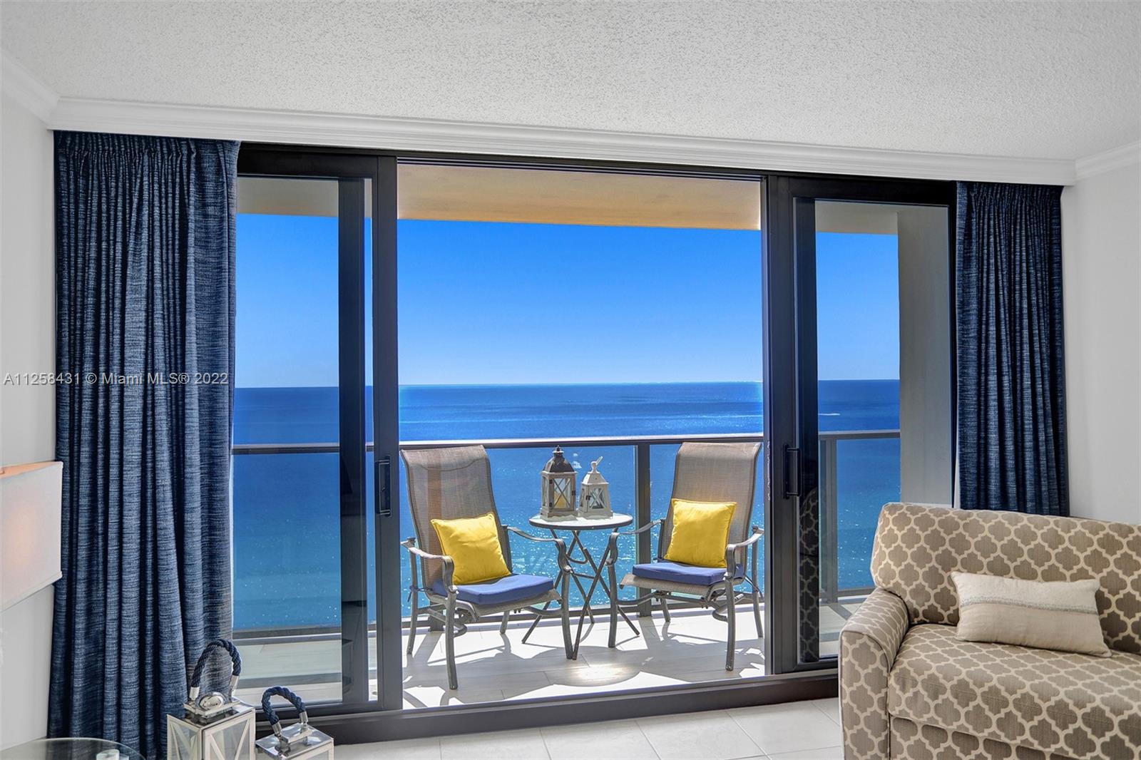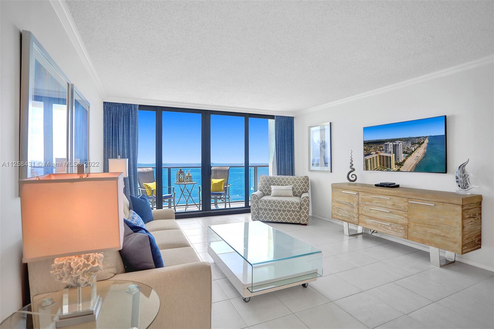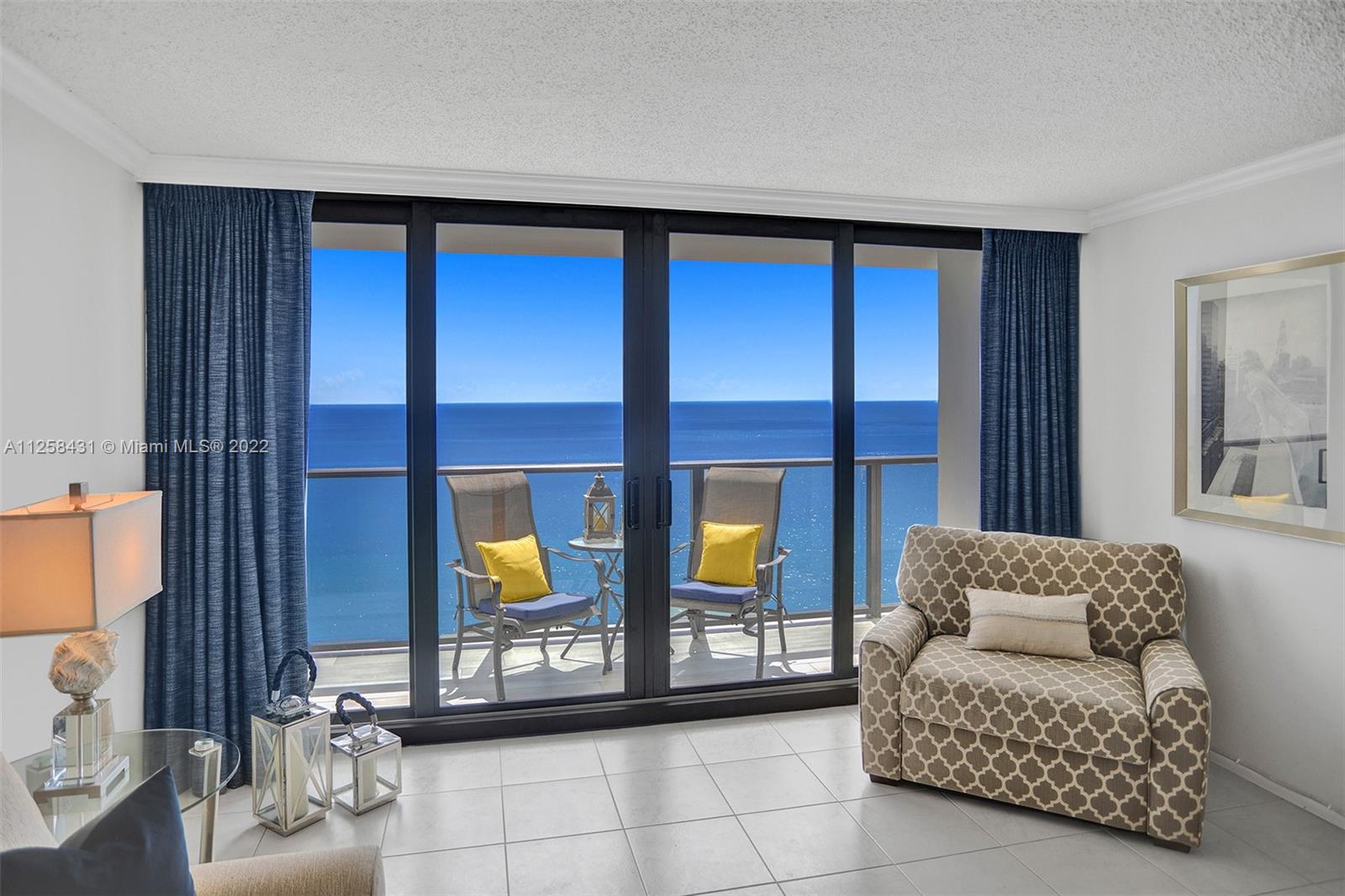 Direct Ocean Views from the 17th floor will take your breath away! Enjoy turquoise colors of the ocean from your large Balcony-terrace Rarely available unique residence will be your one-of-a-kind Oasis on the Beach! Newly ewmodeled building, glass balconies and hurricane proof windows, lobby redone by Steven G Interiors. Building amenities includes: two infinity pools, GYM, Beach Services. Perfectly located in the heart of Hollywood Beach, walk to famous Hollywood Beach boardwalk with many restaurants and shops, life concerts and more. Just a minutes drive to Aventura and Bal Harbour Malls, Fort lauderdale International Airport.