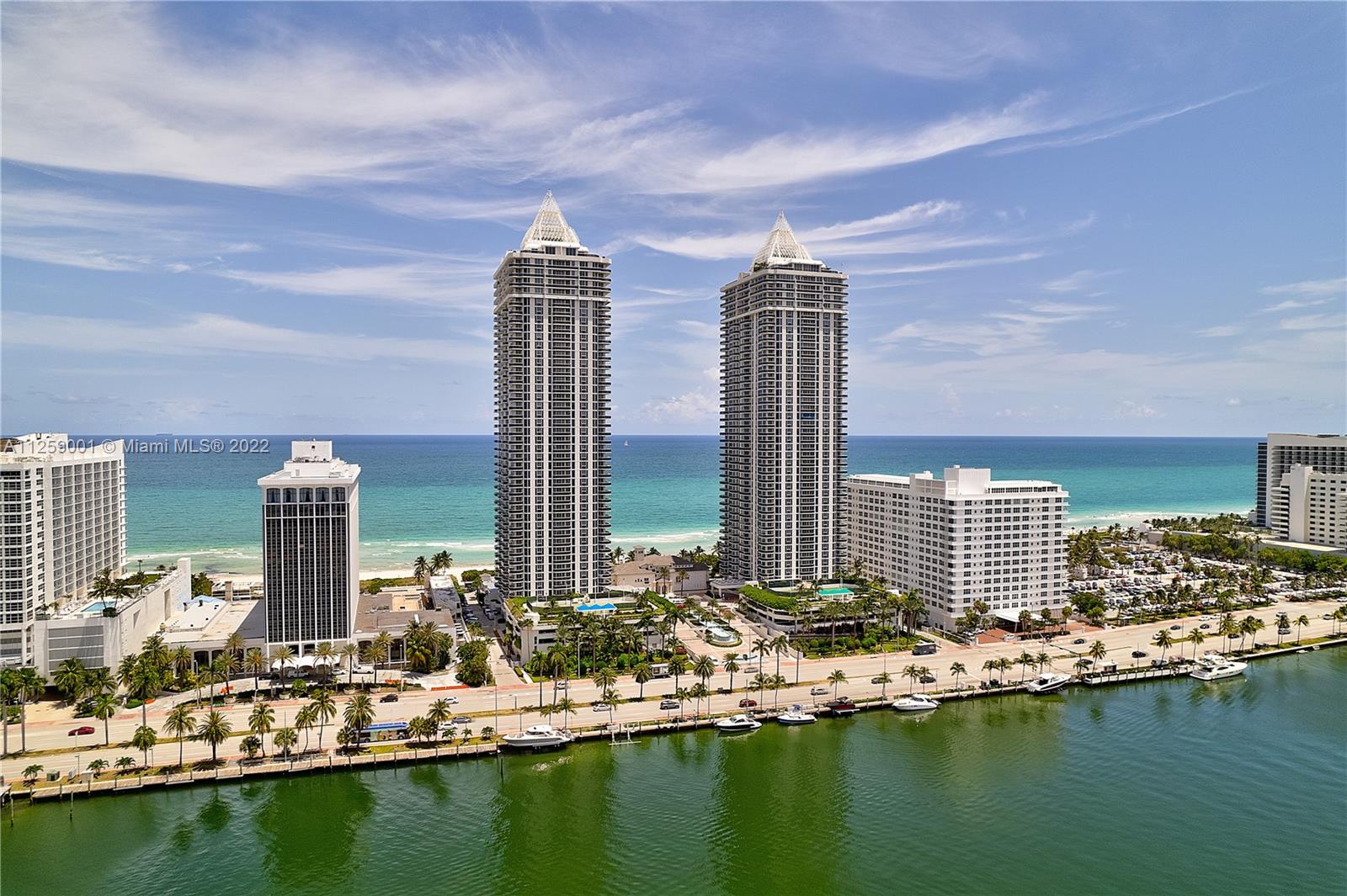 This beautiful Unit with 2 Bedrooms and 2 Bathrooms offers unparalleled views of ocean as well as Biscayne Bay and Miami skyline, either from the balcony, interior living area or either bedroom. Amazing floor plan with Living room and formal dining, plus kitchen of top of appliances and eat-in area. State of art amenities include clubhouse, adult and children's pools, his and hers sauna and steam rooms, tennis courts, billiard and entertainment center, on site Caffe and grocery store. 500 feet of beachside with towel and chair service. A building ideally located along the Atlantic Ocean on Miami Beach's Millionaire's Row is just minutes away from Miami International Airport, Downtown and South Beach. You must see!