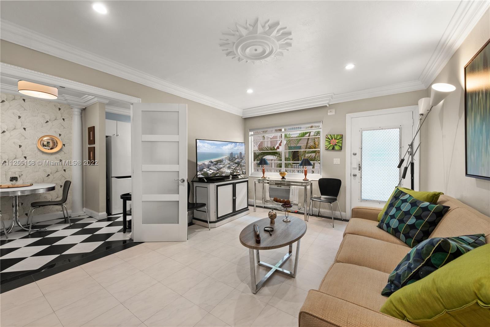A Must See SOBE home! Great location 1 block from the beach & steps away from the fine dining experience within the South of Fifth neighborhood. Featuring plenty of natural light and a functional floorplan, the condo has charming Mid-Century characteristics original to the unit. Updates have been made including gorgeous crown molding and recessed lighting. Building is very quiet and well kept; no pets nor rentals allowed. 55+ CO-OP COMMUNITY. CASH ONLY.