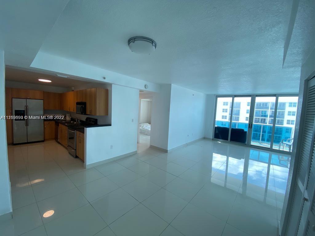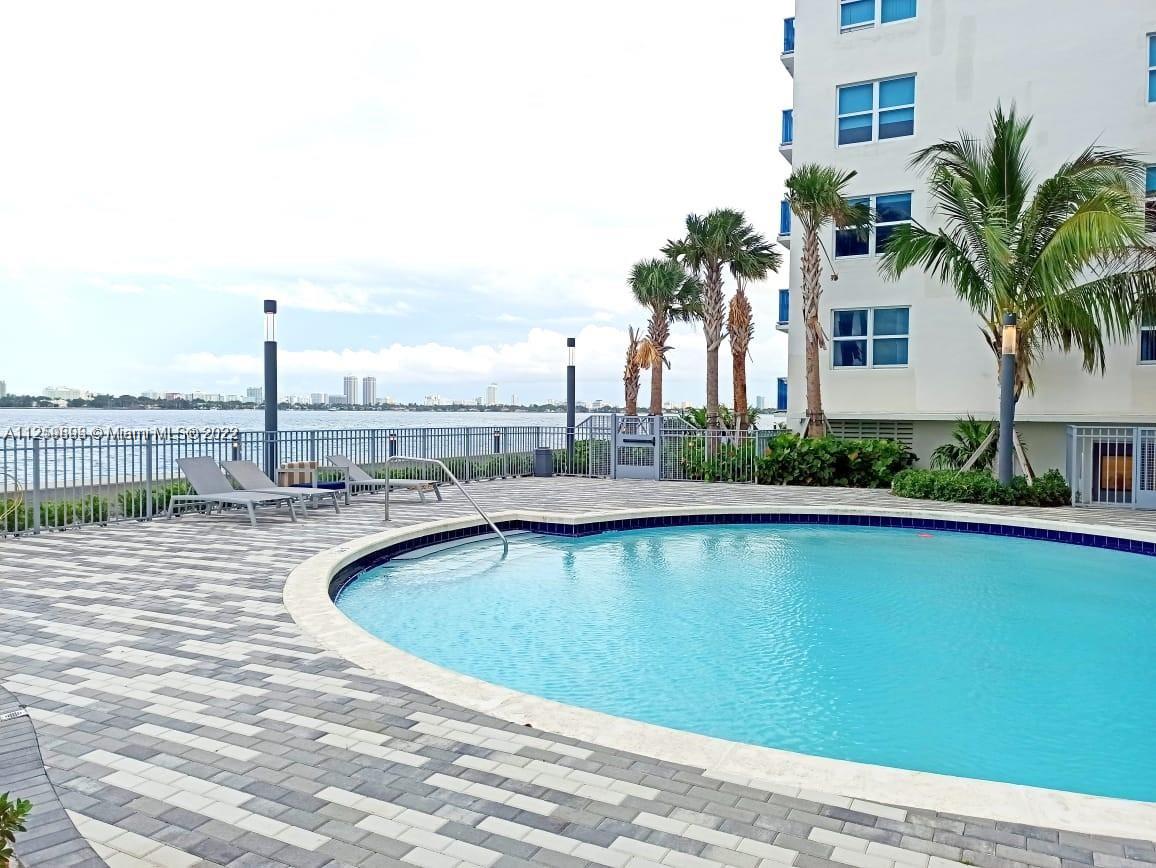 LOCATION! LOCATION! Spacious unit at Treasures on Bay 1100 sf in the lovely North Bay Village community. 2 spacious bedrooms with one bathroom. Plenty of storage space. Granite finishings in the kitchen and bathroom countertop. Tile floors in the living area and wood floors. In bedrooms. The unit faces North, with views of Biscayne Bay to the North and east. Serene waterfront walkway to enjoy. Huge patio. Three pools. Great gym. Split plan with huge living room. Hurricanes impact windows and doors. There is a special assessment, and the building has less than 10% reserves. Please read the brokers' remarks. Before sending an offer* look at the last 180 days comparable sales most are 2/2 the difference in SF is 80 feet "