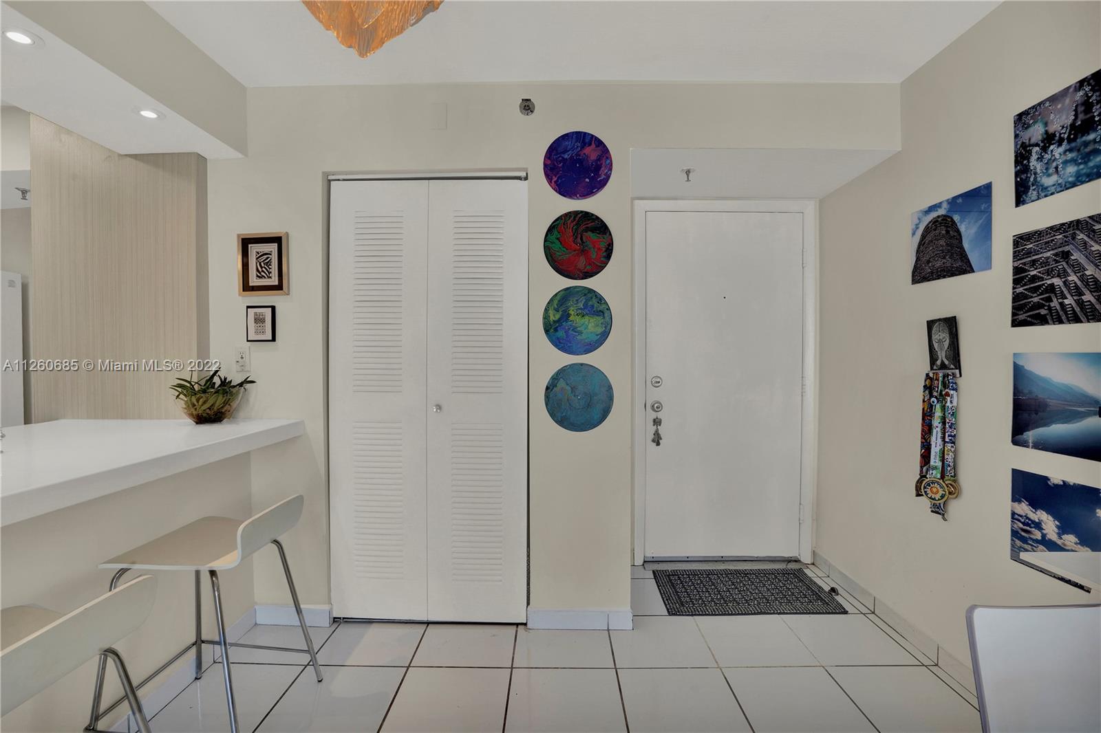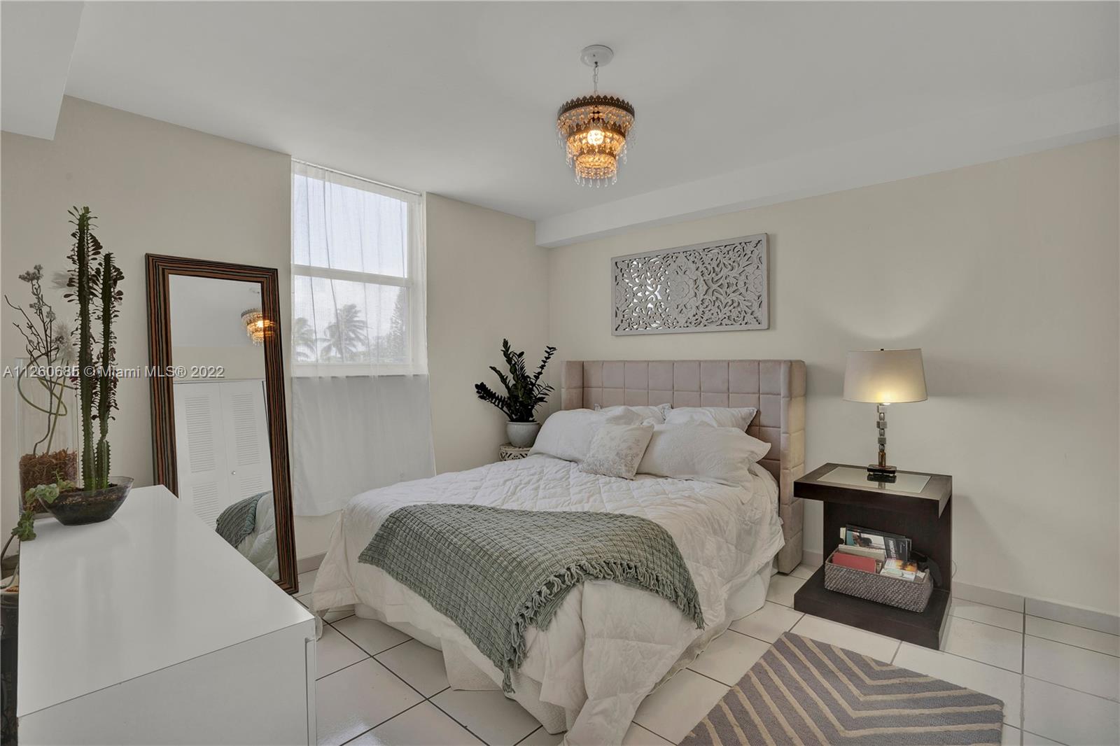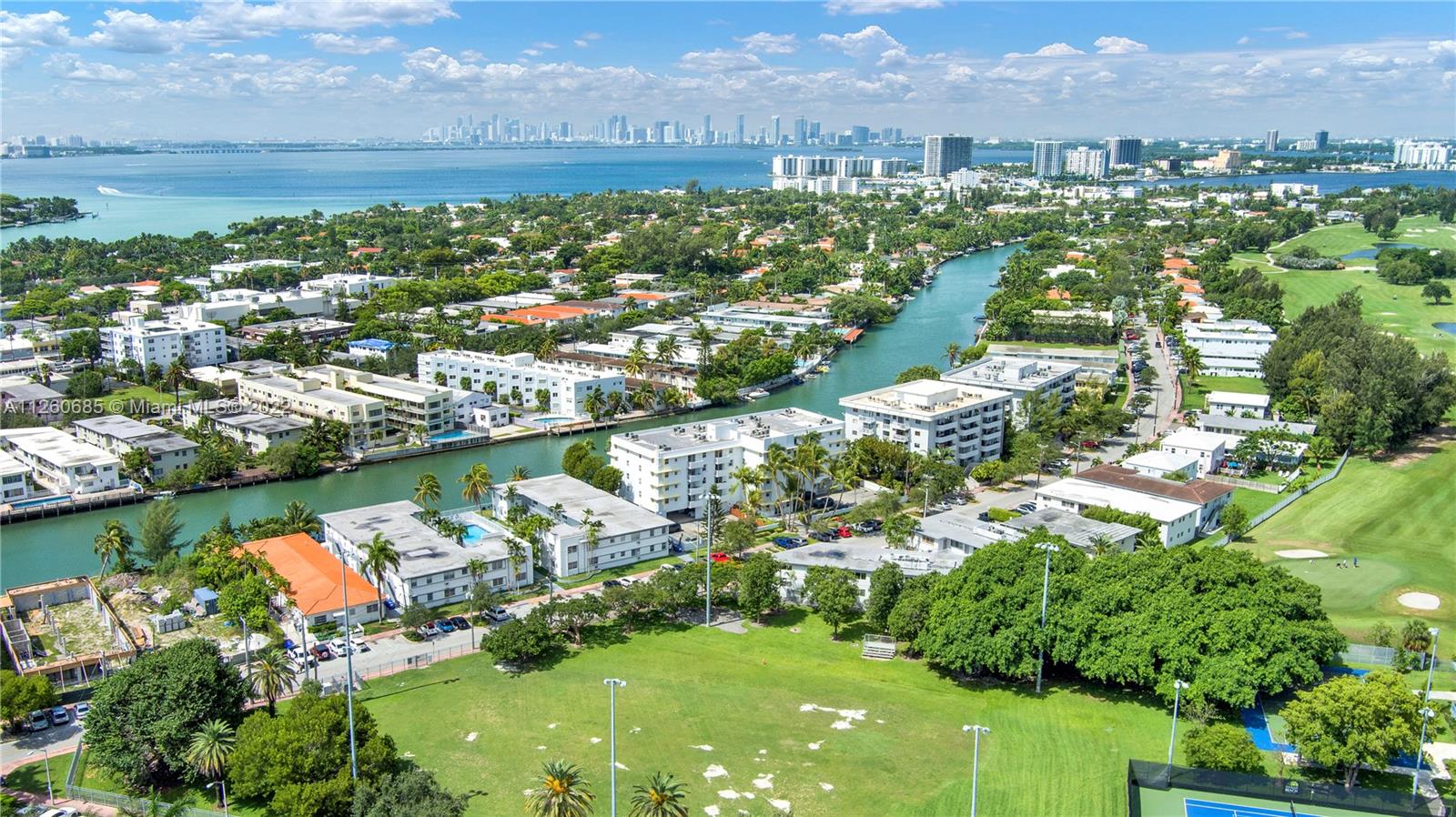 Spacious Unit in Normandy Isle within walking distance to the neighborhood's park, golf course, and the beach. This 1 bedroom, 1 bathroom condominium has an amazing water view from the balcony, lots of natural light, closet space and renovated kitchen and bathroom in 2018. It has tile floors throughout, and Corian countertop in the kitchen. The Boutique Building has a secured garage, an elevator, a pool with deck, and BBQ area. The Low Homeowner's Association Fee includes water, insurance, and maintenance of all common areas. The unit is being offered "as is".