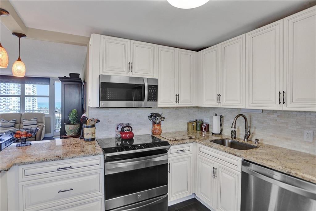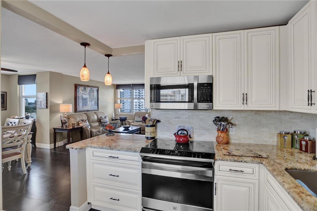 2 Bedroom 2 Bathroom Corner Remodeled Unit in Nassau House. Interior features include remodeled kitchen and bathrooms. Kitchen has granite countertops and stainless steel appliances, wood like tile throughout. Ocean and intercoastal views from all windows. Exterior features includes impact windows and doors, corner unit, spacious balcony. Resort style amenities, pool, clubhouse, 1 covered parking spot, guest parking. Close to restaurants, pompano pier, and shopping. Priced to sell!