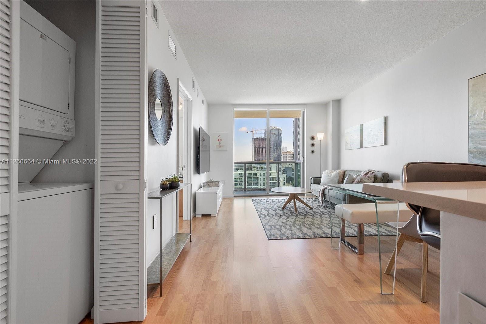 Beutiful one bedroom and one bathroom unit with nice views to the pool area . Open kitchen with steinless steel appliances and laminated floor, balcony, washer and dryer, one assigned parking space. Building offers upgraded gym, pool, sauna with excellent location closed to Miami Beach, Midtown, Downtown and Design District.