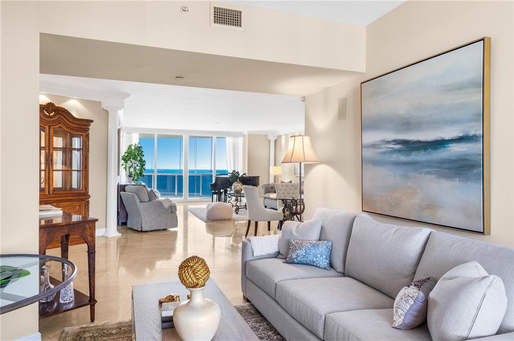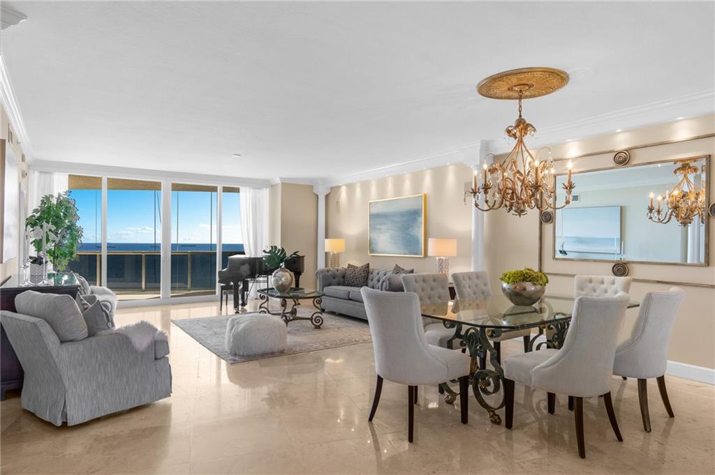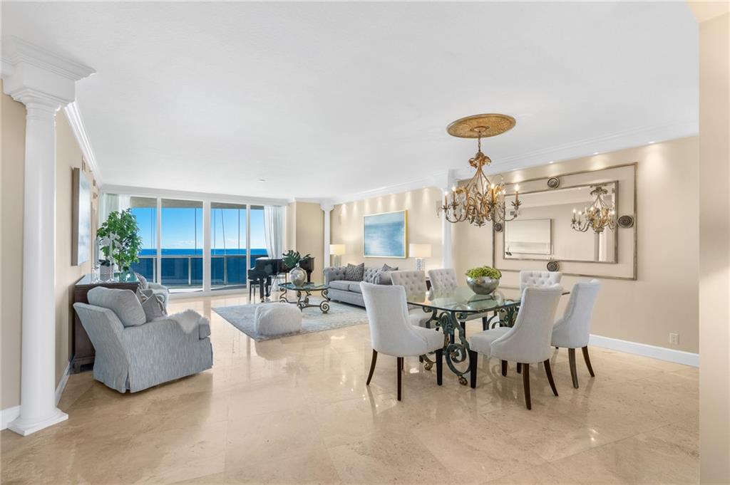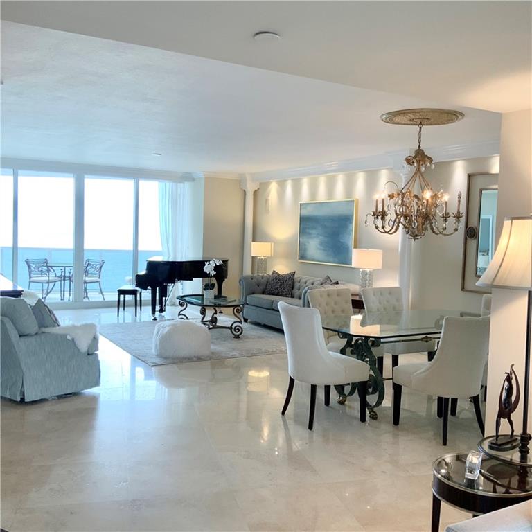 S-U-N-N-Y Southeast exposure ..P-A-N-O-R-A-M-I-C views of coastline, ocean & pool area ..two terraces.. marble floors.. HURRICANE IMPACT WINDOWS.. Currently 2 bedrooms plus a den which can easily be the 3rd bedroom. Furniture is negotiable. L'HERMITAGE is a resort-like community with 2 tennis courts, valet for guests, concierge, beach attendant, cabanas, SELF PARKING GARAGE FOR OWNERS, New lobby, new exercise spa, poolside cafe, tiki huts, bbq area and pet parks..TWO PETS ,ANY SIZE, OK.. E-A-S-Y to S-E-E