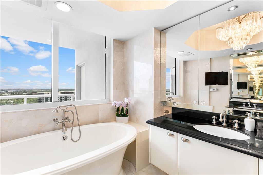 THIS PRISTINE PARK MODEL DELIVERS A MODERN SLEEK DESIGN BY STEVEN G W/ PRIVATE ELEVATOR ENTRY LEADING INTO A GALLERY LIKE FOYER SHOWCASING WALLS OF ARTWORK, CHANDELIERS, MARBLE FLOORING W/ CUSTOM INLAYS, WOOD PANELED COLUMNS, REFLECTING A KEEN EYE & APPRECIATION TO DETAIL. CUSTOM ILLUMINATED CEILINGS ANGLE OUT THE FLOOR PLAN OFFERING ANOTHER ASPECT OF ART IN ITSELF. RIVER & OCEAN VIEWS FROM THIS 3 BED 3 BATH RESIDENCE SPREAD OVER 3400 SQFT W/ 4 TERRACES. PREMIER FEATURES INCLUDE MOTORIZED WINDOW TREATMENTS, STATE OF THE ART SOUND SYSTEM, LOUNGE W/ BAR, CUSTOM DOORS, SPA-INSPIRED BATHS & AN OPEN KITCHEN WELL EQUIPPED W/ 2 SUBZERO REFRIGERATORS, WINE COOLER, LARGE ISLAND, SNAIDERO CABINETRY & AMPLE CABINET SPACE.