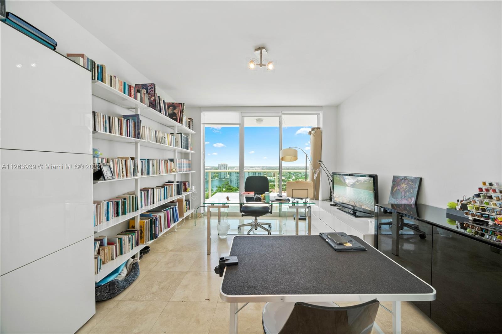 Peninsula One! Private Elevator with Foyer entry. Spectacular Ocean, Intracoastal and City View. This unit is almost 3,000 SqFt, 2 Bedrooms, 2.5 Bathrooms + a Large Media Room or Office. Some units have converted this space into a 3rd Bedroom. Huge interior Utility Room. Marble floors throughout, top of the line kitchen appliances, spacious walk-in closets. Amenities in the building include Tennis, Gym, Sauna, Pool, etc. Dog Walk and Dog Park, Children’s Playground and More, Great location in Aventura close to Schools, the Mall, Restaurants and the beach.