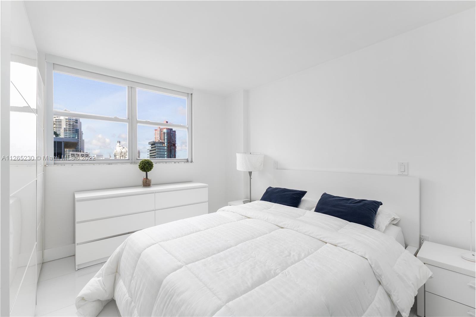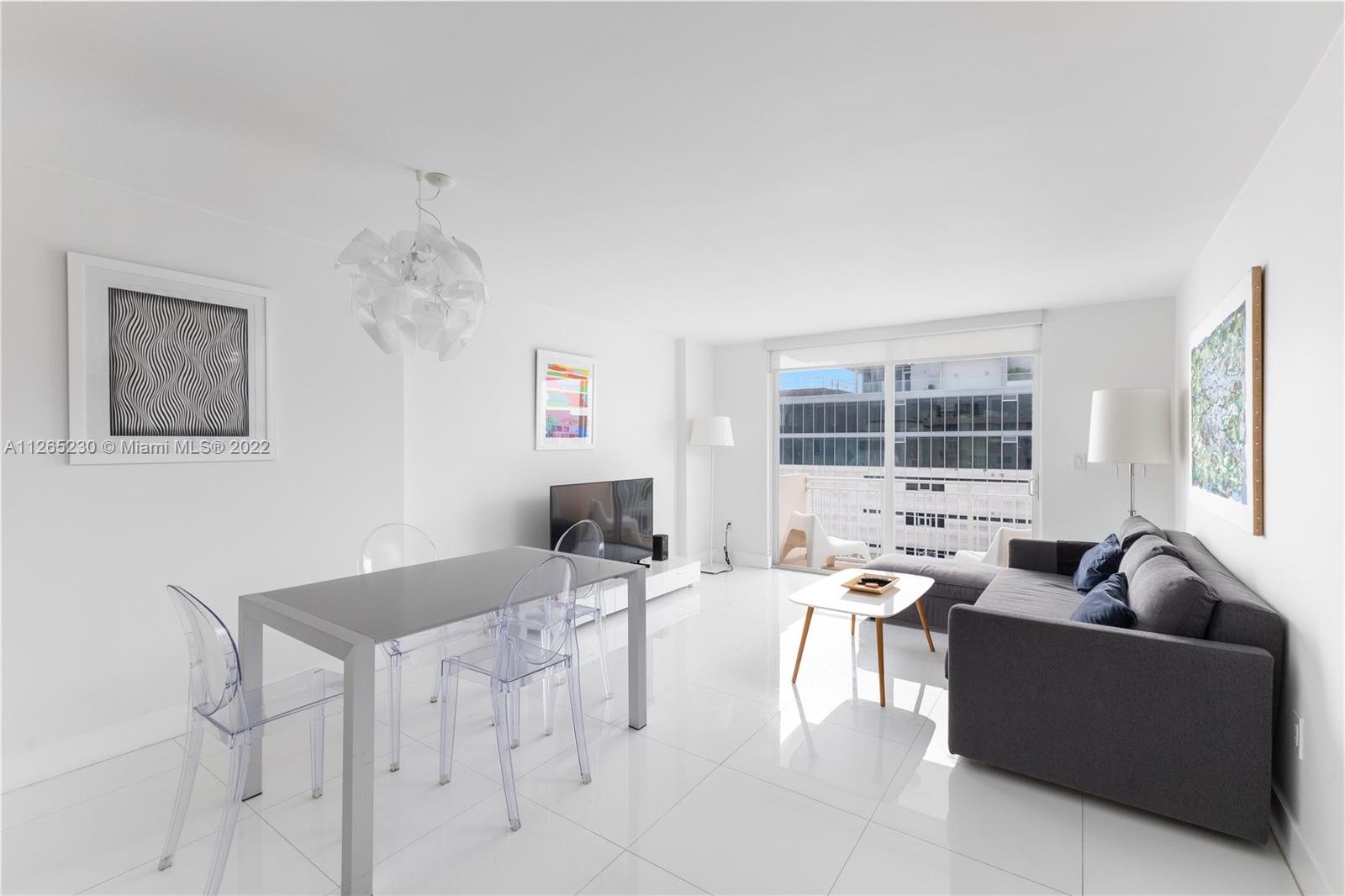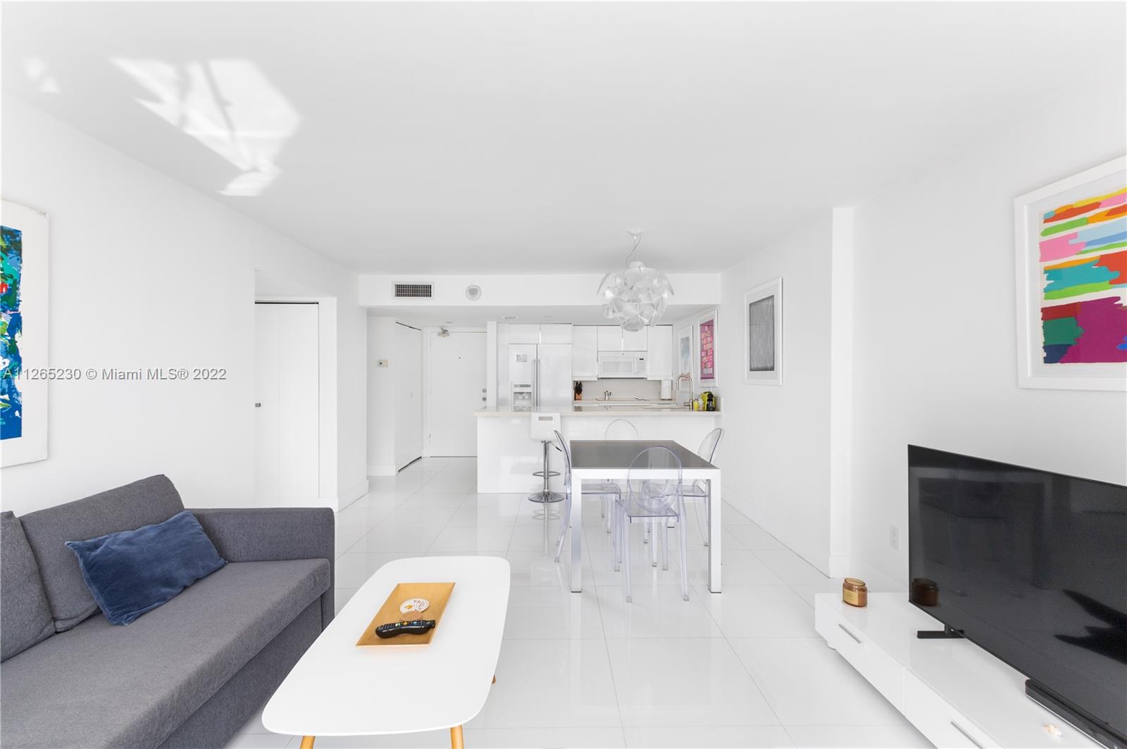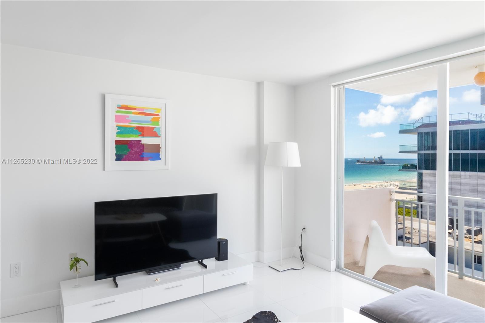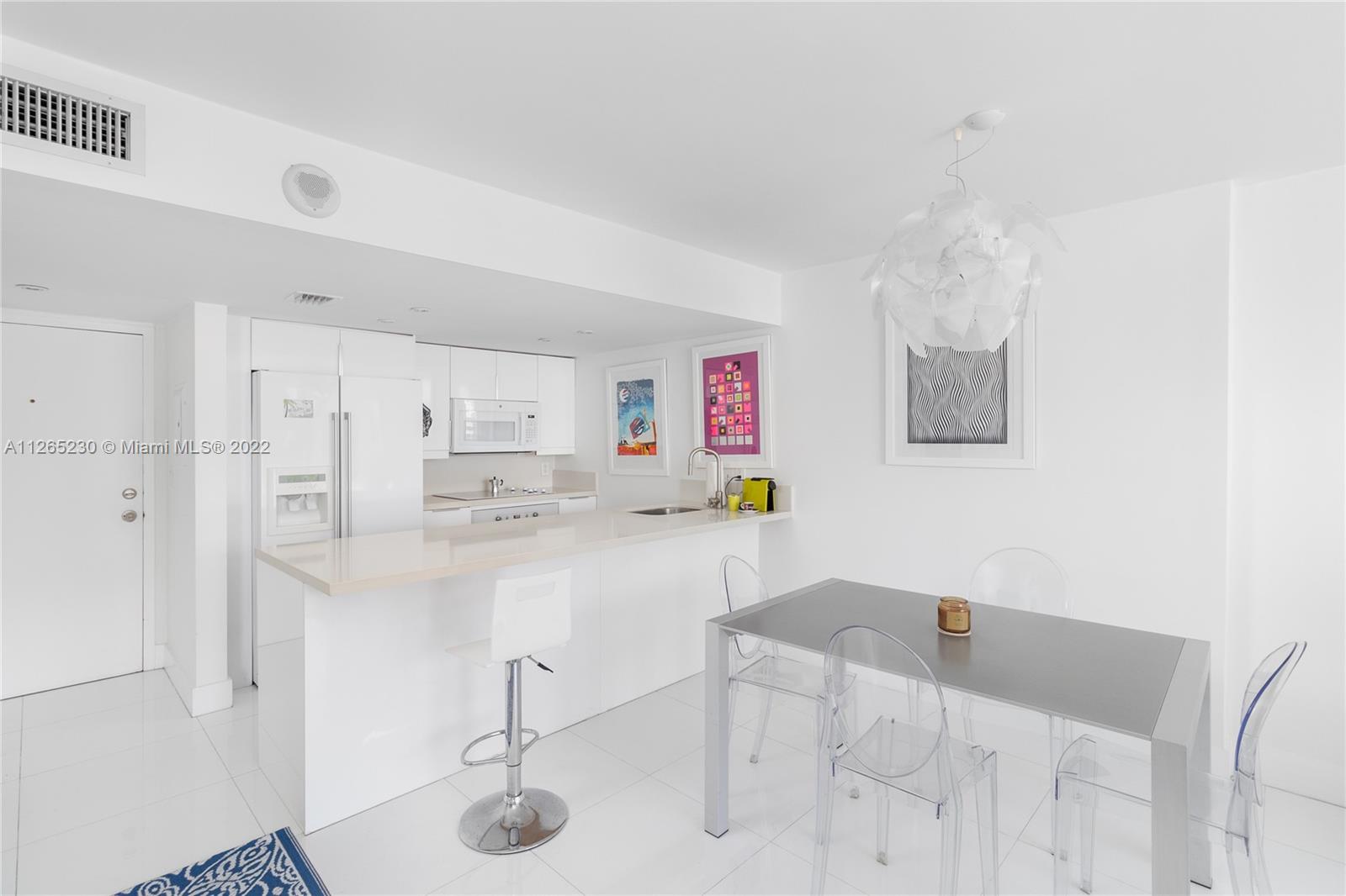 Spectacular unobstructed ocean & skyline views from this exquisitely renovated high floor 1 bed 1 bath w/den, balcony & covered parking in Oceanfront South of Fifth St. Stunning design w/all furnishings included- your perfect beach paradise: Beautiful open kitchen in white w/monochromatic appliances including flat-top range, microwave, dishwasher & side-by-side refrigerator, white floors throughout, oversized bathroom w/glass shower, impact glass leading to large balcony & more. Gorgeous designer flare from the modern furnishings & frosted glass doors to the custom Italian light fixture- wow. Includes rare & valuable 2nd floor garage parking. Oceanfront condo allows washer/dryer in unit, has new heated pool & 24 hr security. Perfect home or investment-great tenant paying $2875 until 2/23.