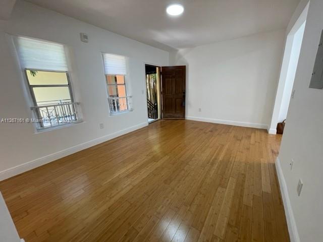 Beautiful one bedroom plus den, one bathroom with tub, in charming old spanish building. Unit located on first floor, no elevator. Bright and cozy this all-through hardwood floors is freshly painted unit is perfectly located. Kitchen has white granite countertops, all stainless steel appliances with gas stove and stacked washer & dryer. Central AC. Den connected to living area making space larger for different uses. Bathroom with window and tub, marble flooring. Linen closet, and small walk-in closet at master bedroom. One parking space assigned in attached fenced parking lot. Building has a community pool facing the canal with a social area to relax, sunbathe or grilling.