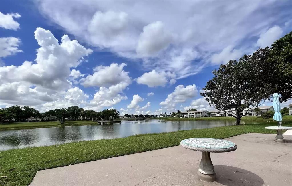 Impeccable & Updated with Water Views in 55+ Century Village! Fantastic Central Location Close to The Main Clubhouse, Hastings Fitness Center, and the Kent Pool. Delightful Kitchen with White Cabinets, Stone Counters, and Crisp White Appliances Including a Washing Machine (in unit dryer found in lanai closet). Gleaming Wood Flooring Throughout the Living Areas. Updated Baths. Spacious Bedroom Suite with Walk-in Closet and Full Ensuite Bath. Enclosed Lanai with Pretty Lake Views. New AC and Water Heater Within the Last Year. Sold AS IS and Furnished with Lightly Used Tasteful Furnishings. Meet Friends & Neighbors At the Lovely Waterside Resident Patio! Century Village is a 55+ Community with So Much to Offer...