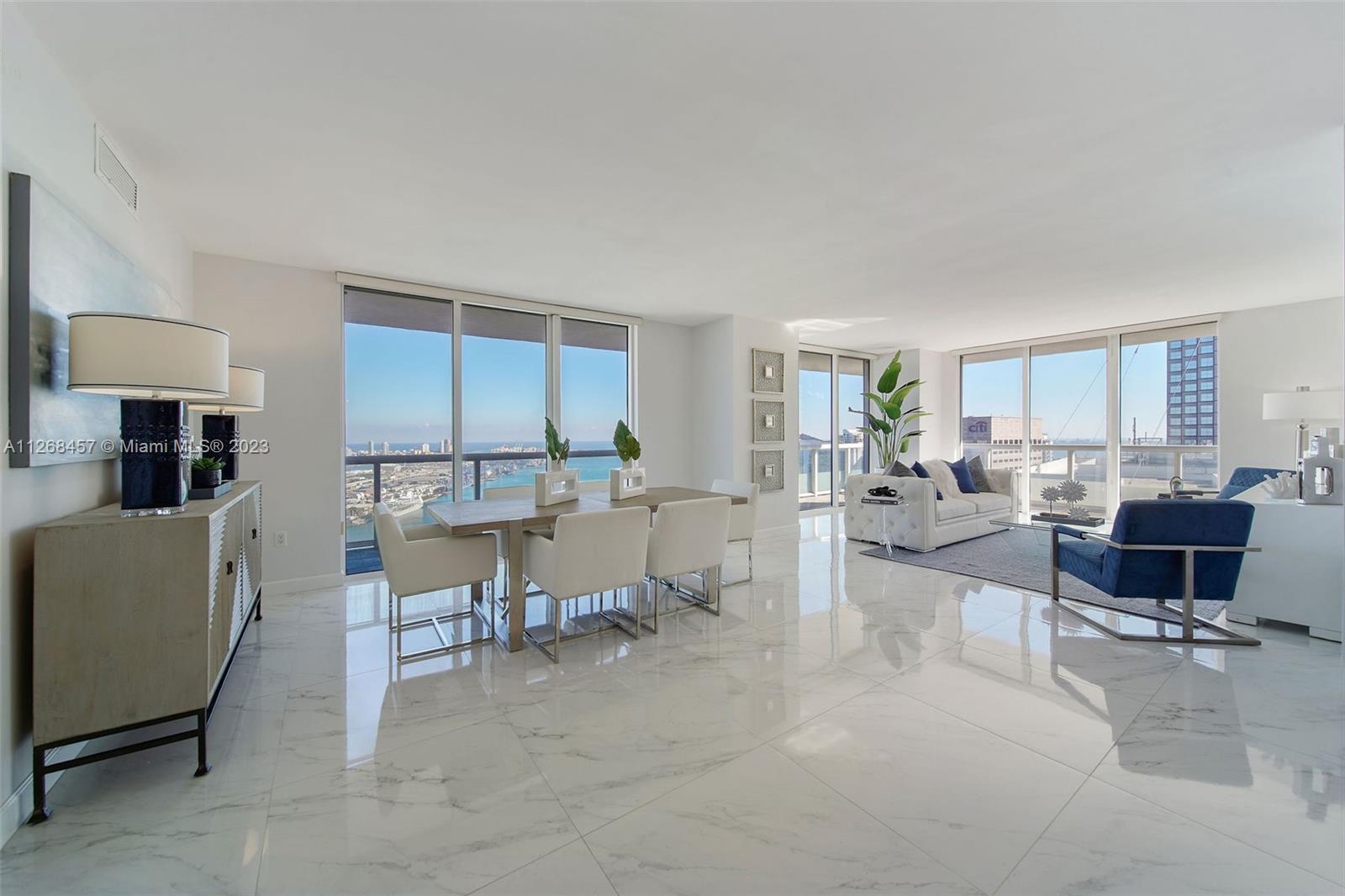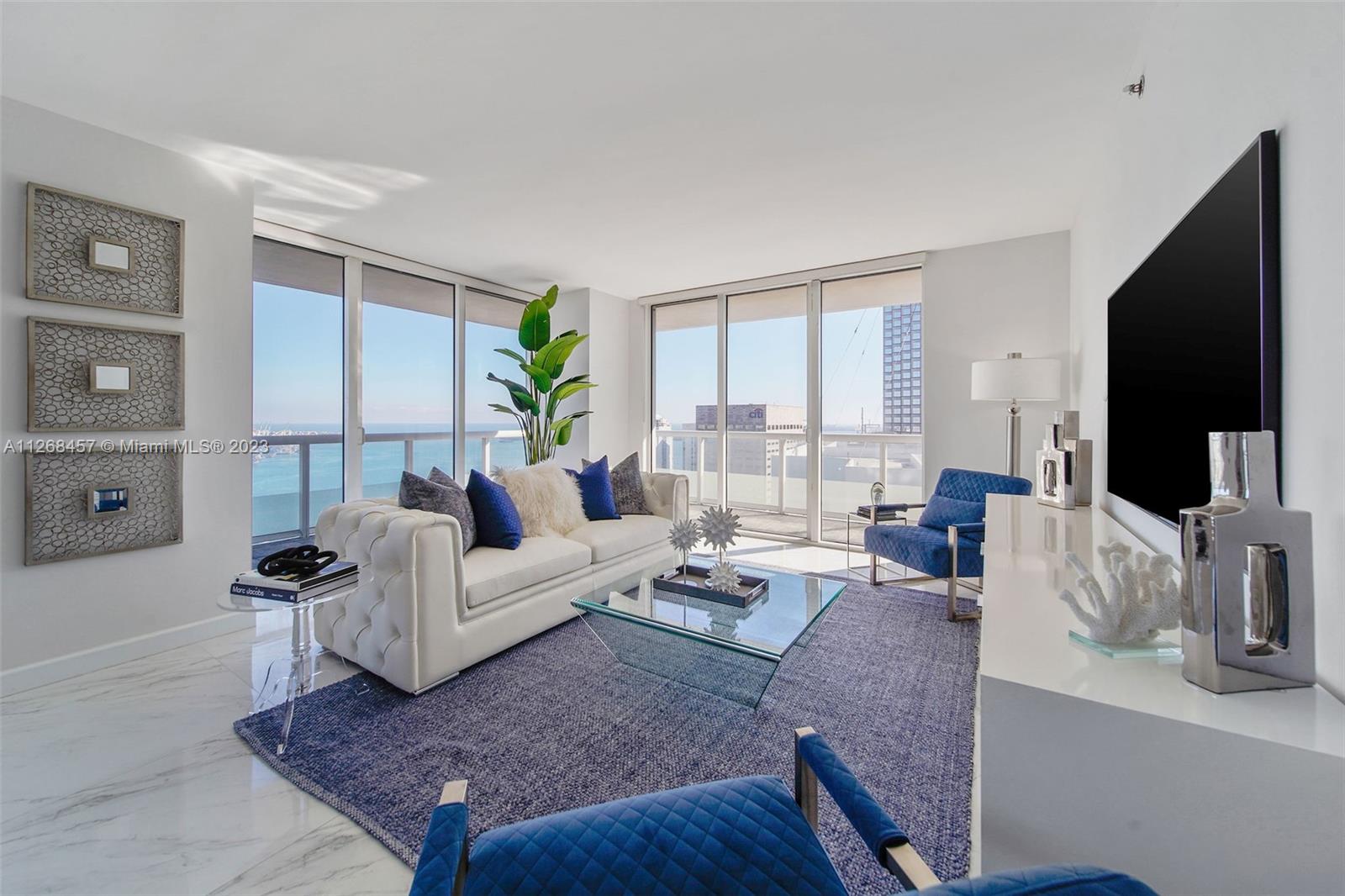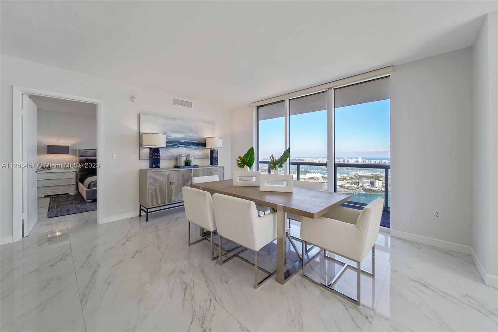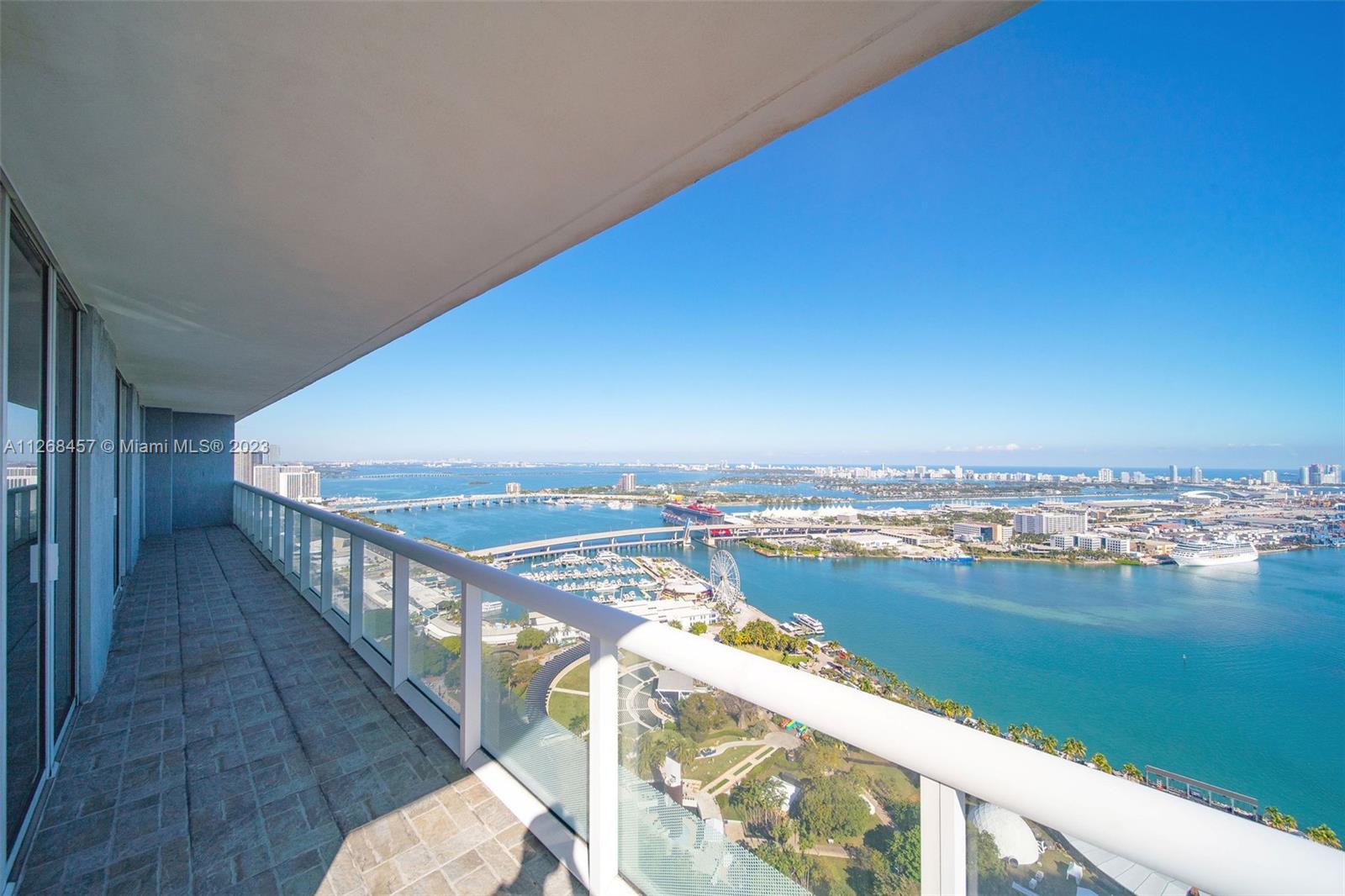 Enjoy spectacular views of Biscayne Bay, Port of Miami, and Miami Beach from this 3 bed/2 bath corner residence located in the heart of Miami. This Southeast corner unit features an open kitchen/living room layout, porcelain floors throughout, ample closet space, washer and dryer, tiled balcony and views from each room. 50 Biscayne is a full amenity building with an Olympic-size heated pool, state of the art spa, private fitness center, tennis, security valet parking and concierge service. Enjoy living across bay front park with the convenience of being minutes away from Miami’s top museums, restaurants, nightlife, financial district, best hospitals, public transit hubs and main highways.