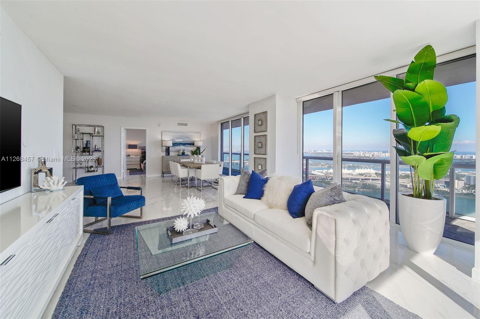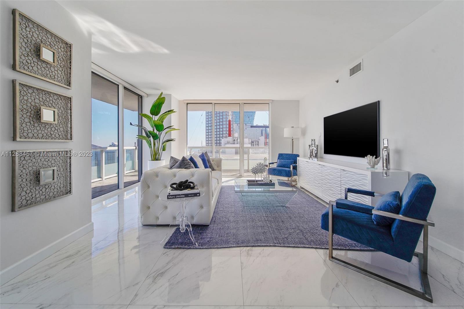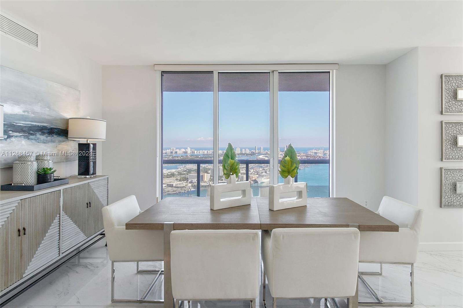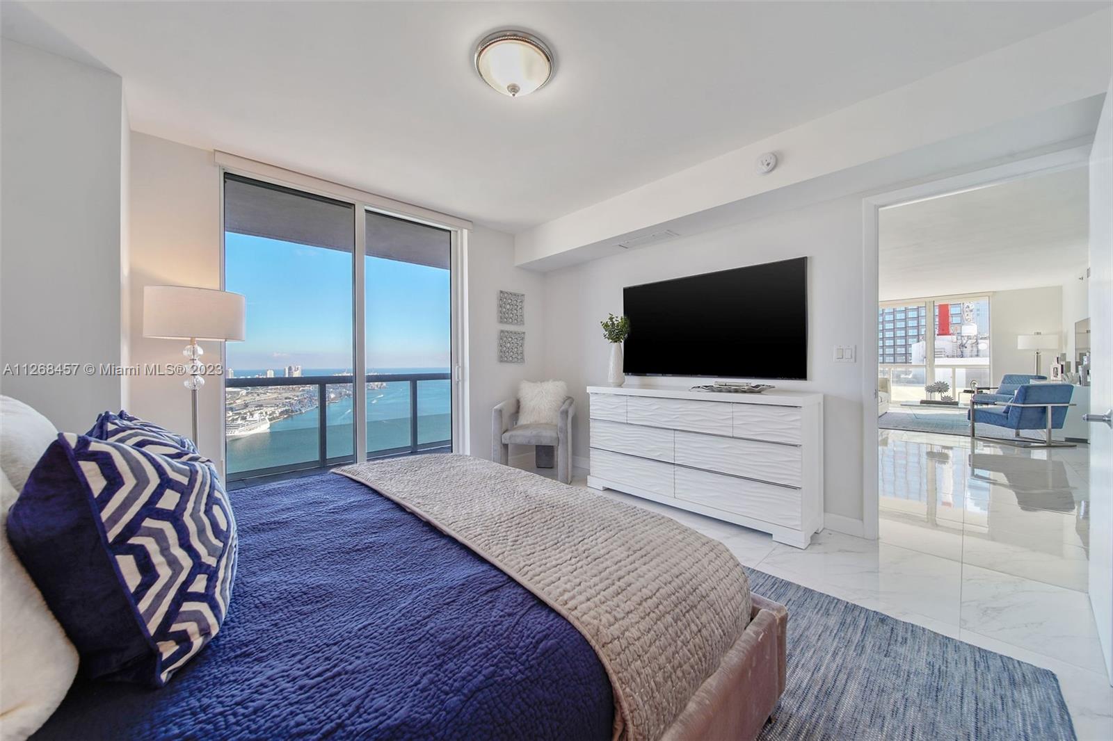Enjoy spectacular views of Biscayne Bay, Port of Miami, and Miami Beach from this 3 bed/2 bath corner residence located in the heart of Miami. This Southeast corner unit features an open kitchen/living room layout, porcelain floors throughout, ample closet space, washer and dryer, tiled balcony and views from each room. 50 Biscayne is a full amenity building with an Olympic-size heated pool, state of the art spa, private fitness center, tennis, security valet parking and concierge service. Enjoy living across bay front park with the convenience of being minutes away from Miami’s top museums, restaurants, nightlife, financial district, best hospitals, public transit hubs and main highways.