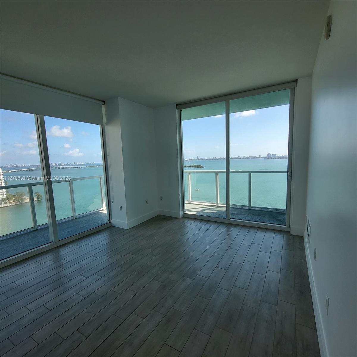 large unit featuring 2 bedrooms and 2.5 baths facing direct bay view and park. Grey tile floors, stainless steel appliances, two balconies. Building offers great amenities, suck as 2 pools, party room, well equipped exercise and yoga/stretching room and garage parking. Right in from of the park , walking distance to restaurants and supermarkets, very conveniente to access Venetian Cswy and I-95.